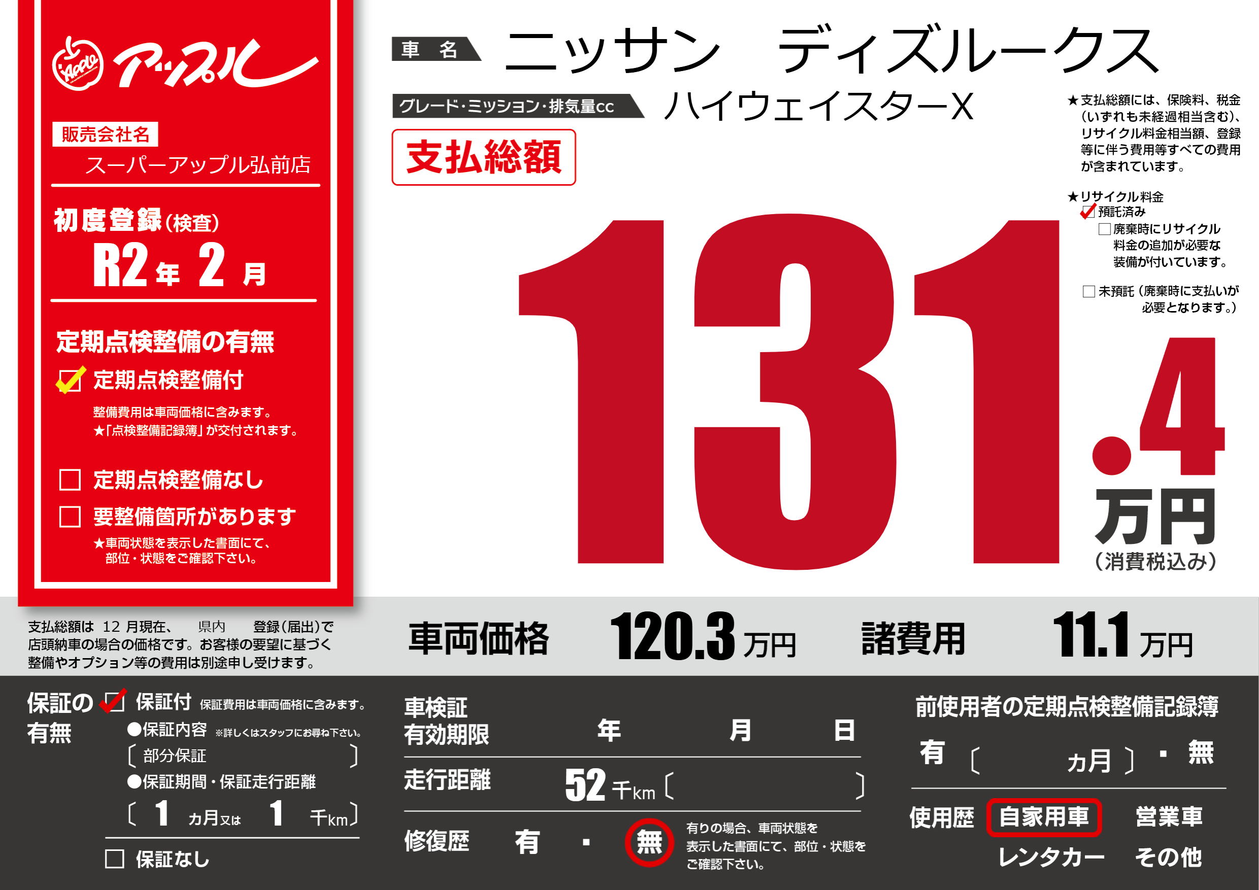 | 車名 | ニッサン ディズルークス | グレード ミッション 排気量 |