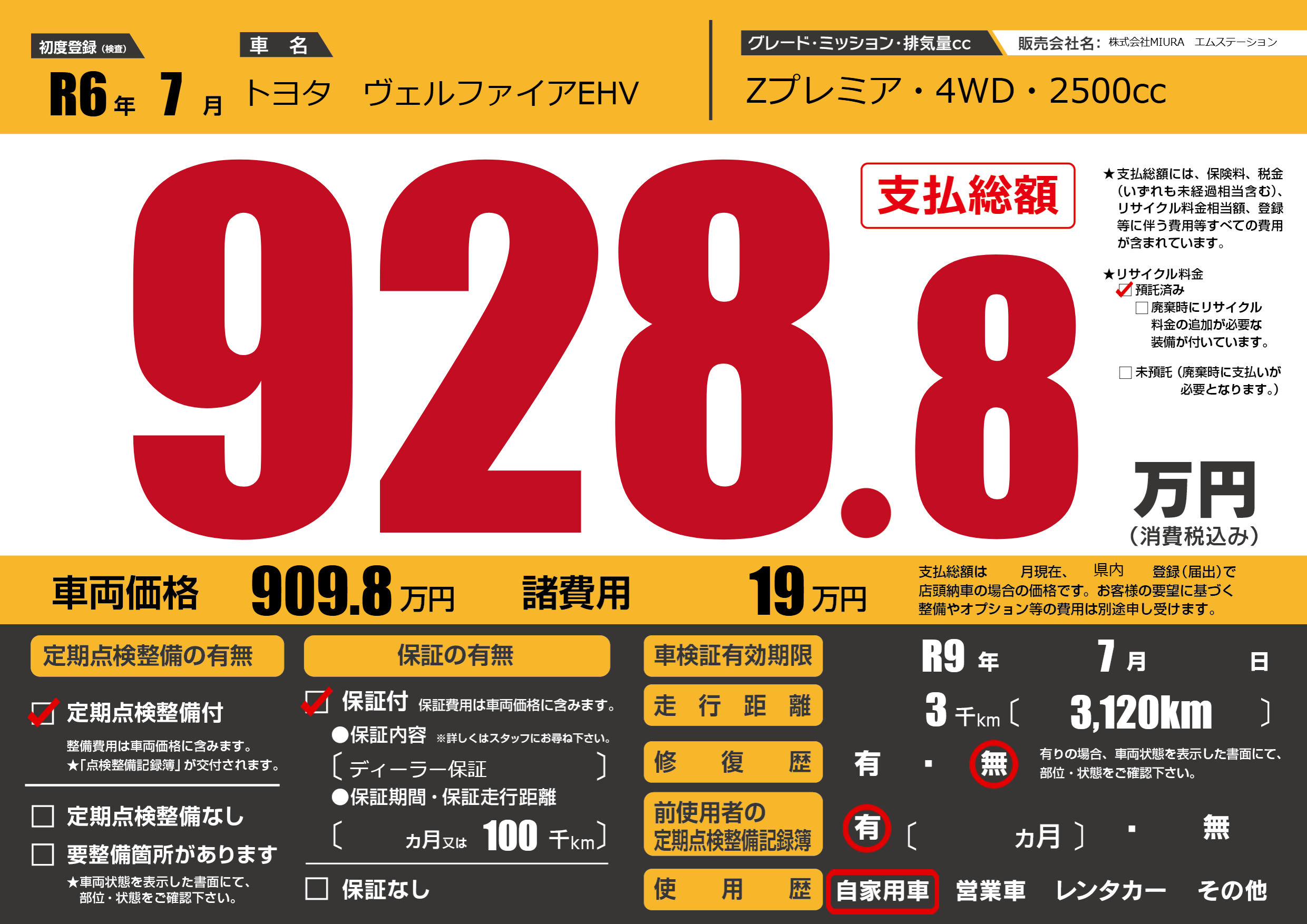 | 車検制限 | R9年 7月 - 日 | ||