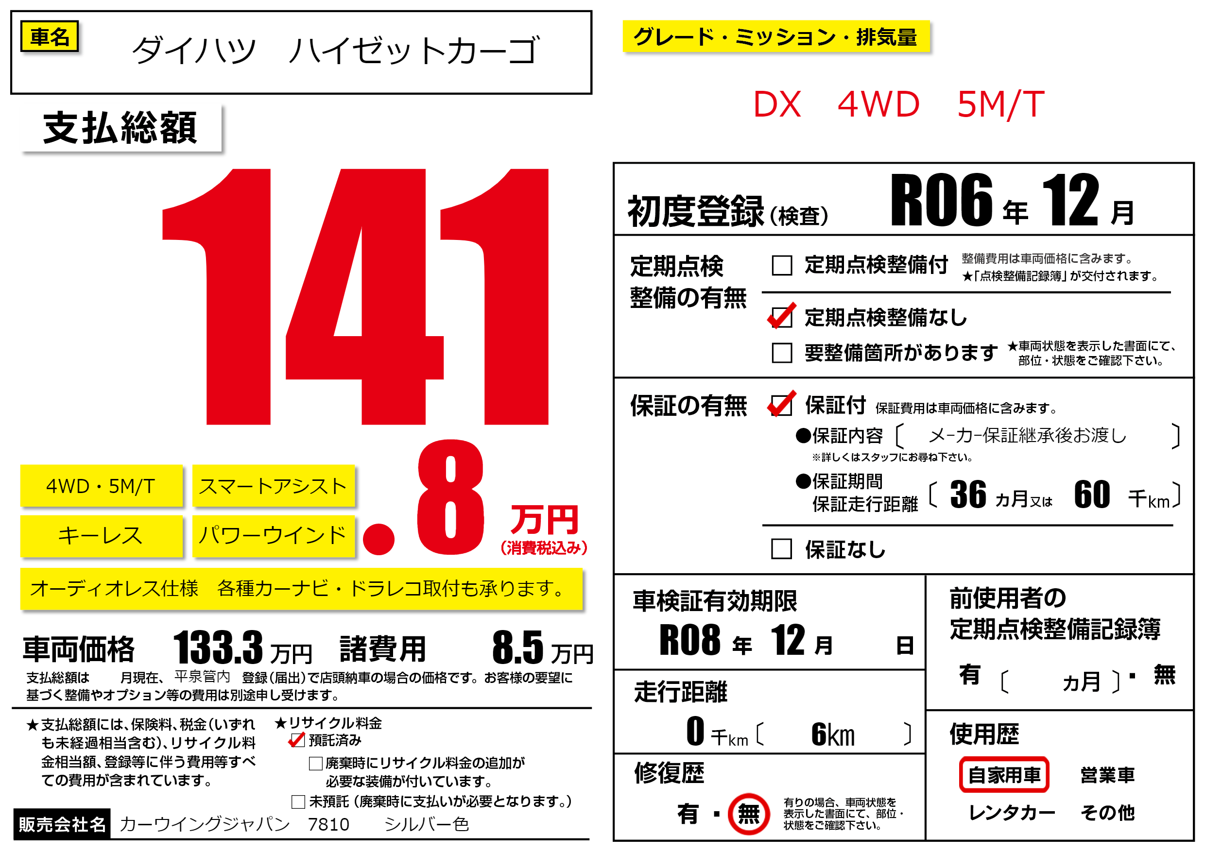 | 走行キロ | - | 初年度登録 | R06年12月 |