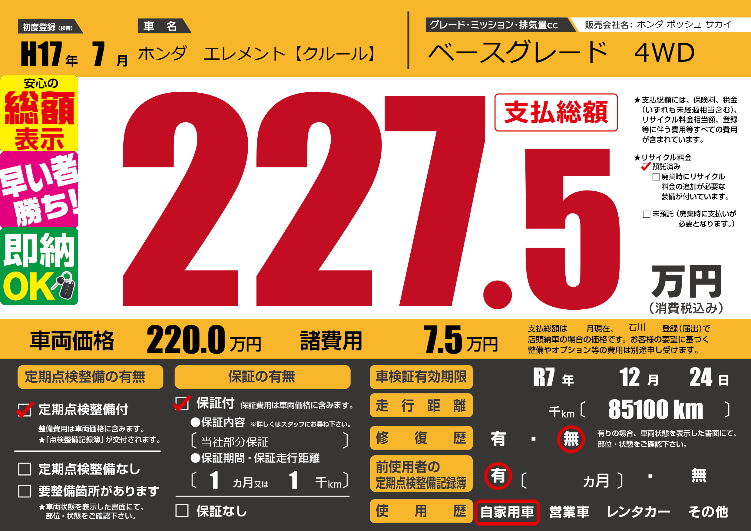 なし | 車検制限 | R7年12月24月 |