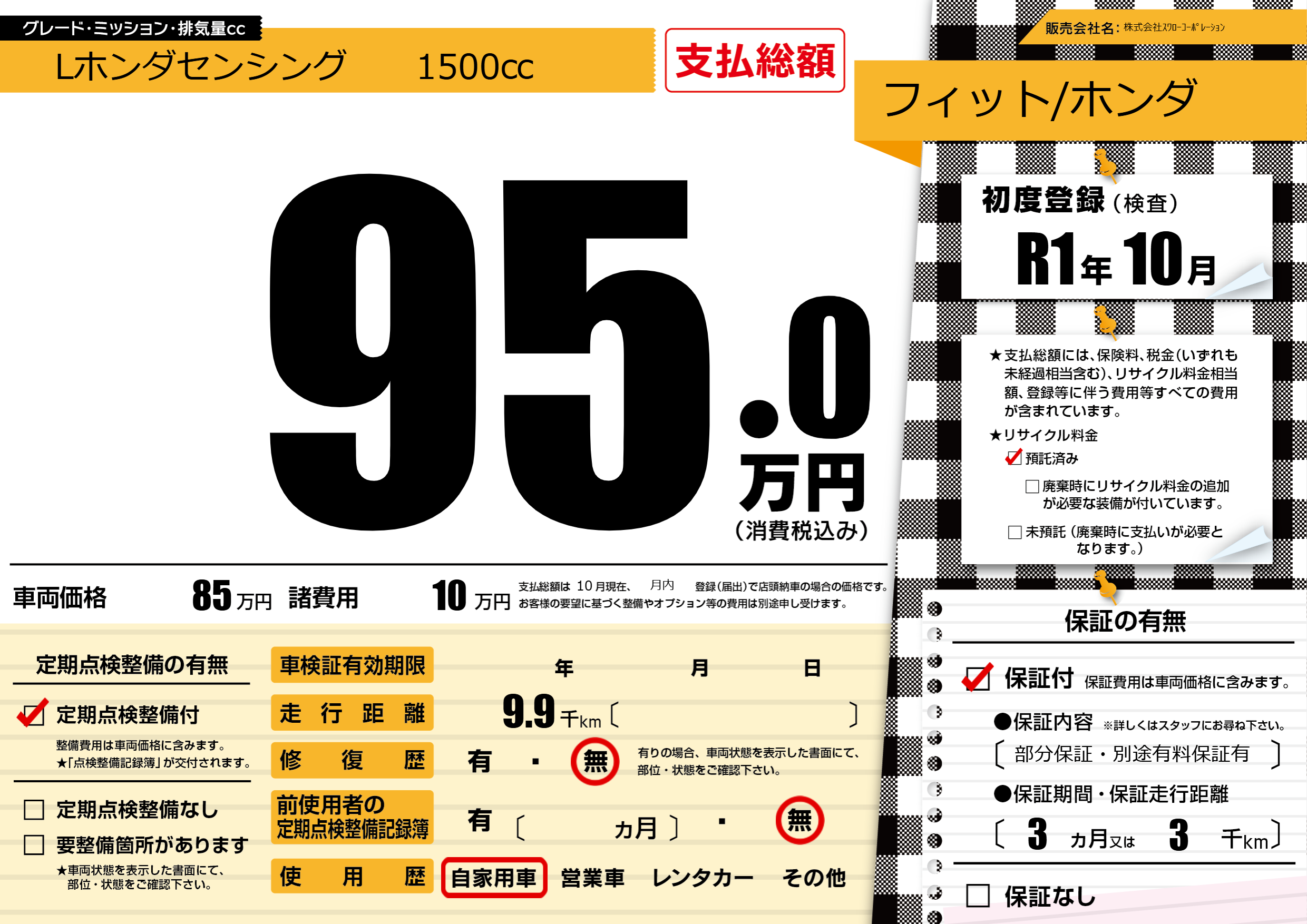 保証付き 保証内容(部分保証・別途有料保証有) 3ヶ月または(3)千kmまで |