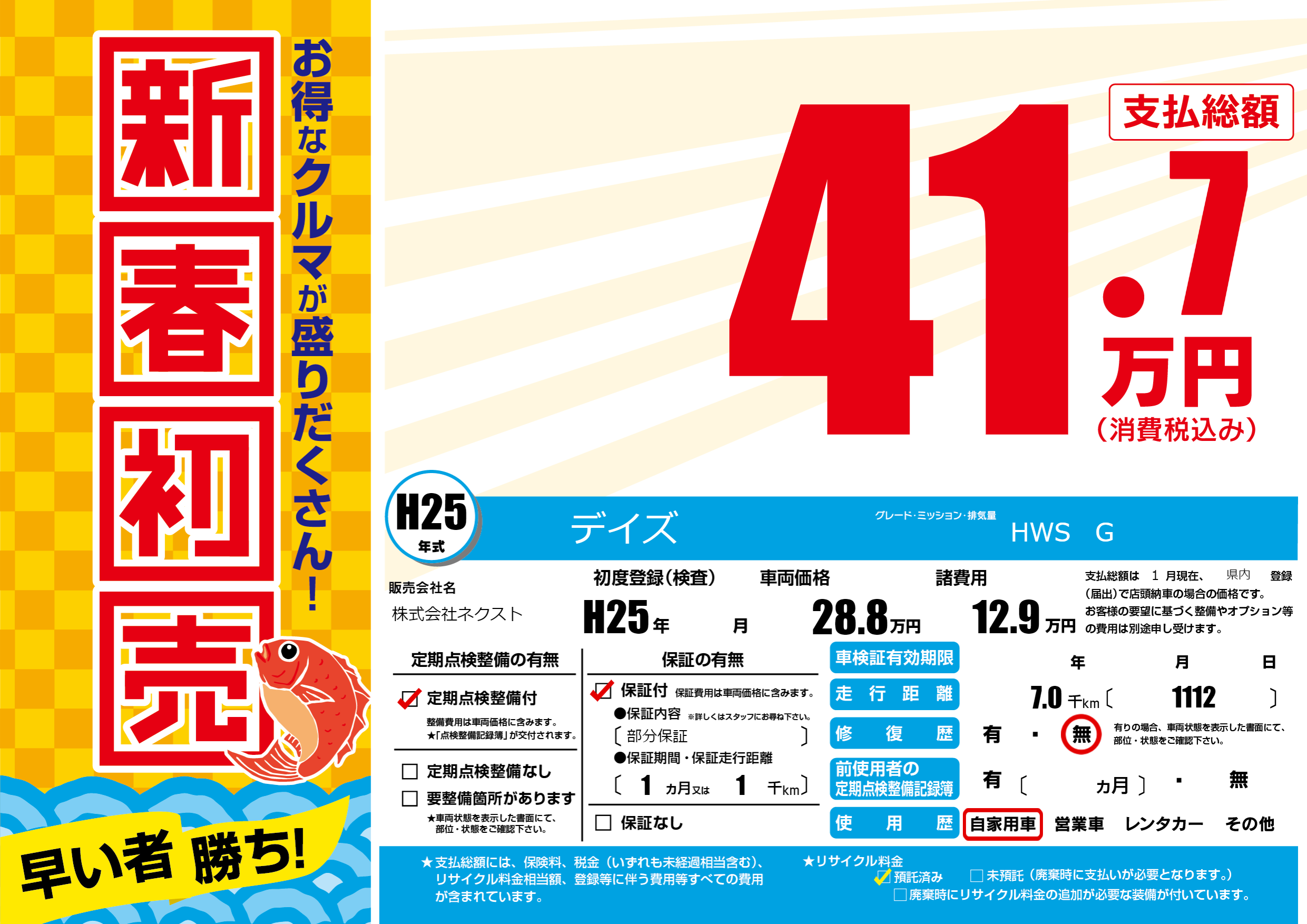 | 車名 | デイズ | グレード ミッション 排気量 |