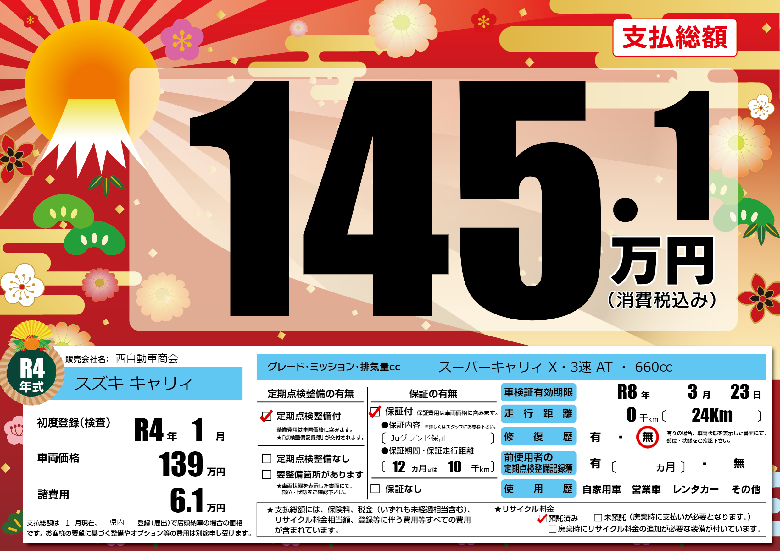 | 走行キロ | - | 初年度登録 | R4年1月 |