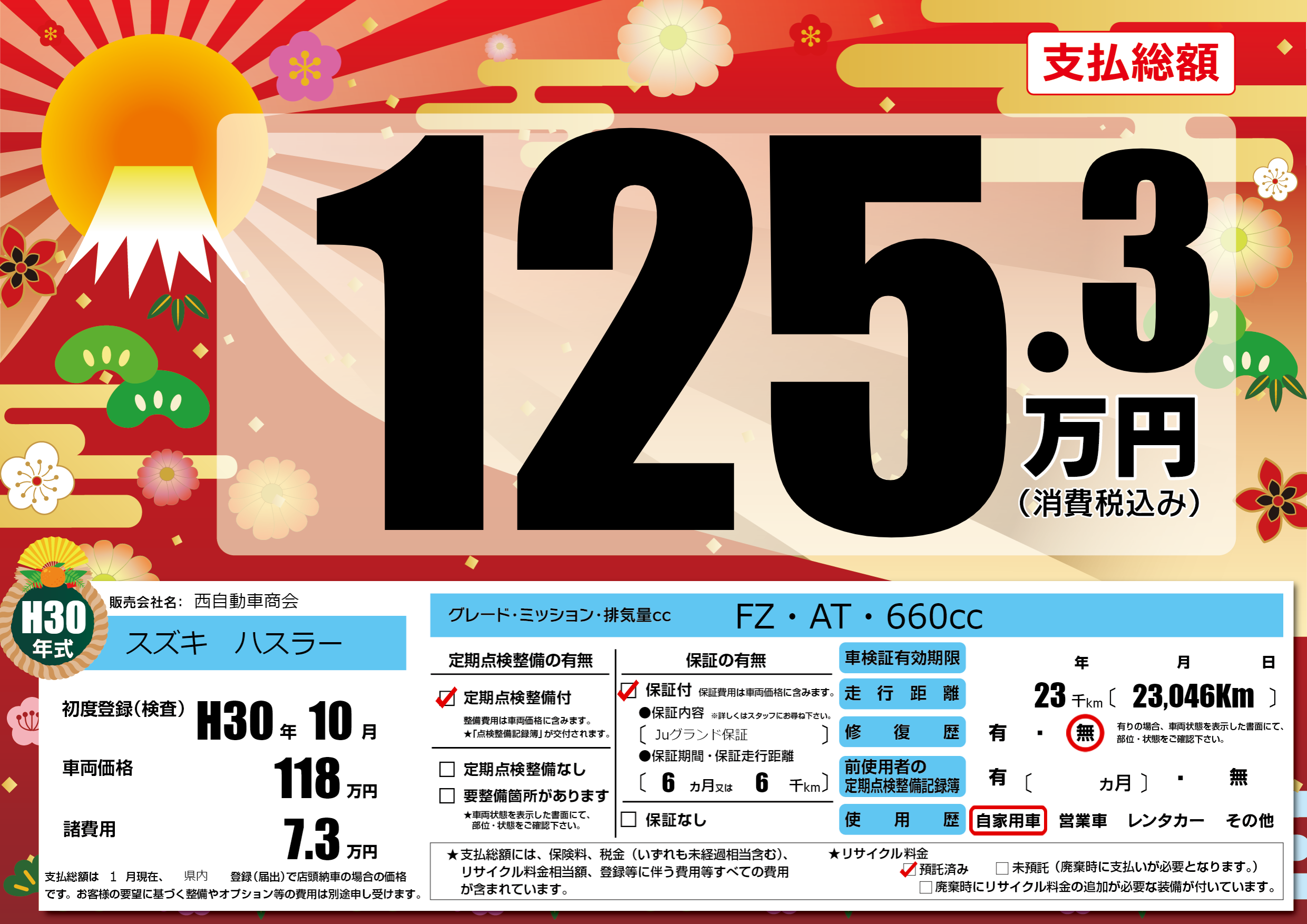 | 走行キロ | 2.3万km | 初年度登録 | H30年10月 |