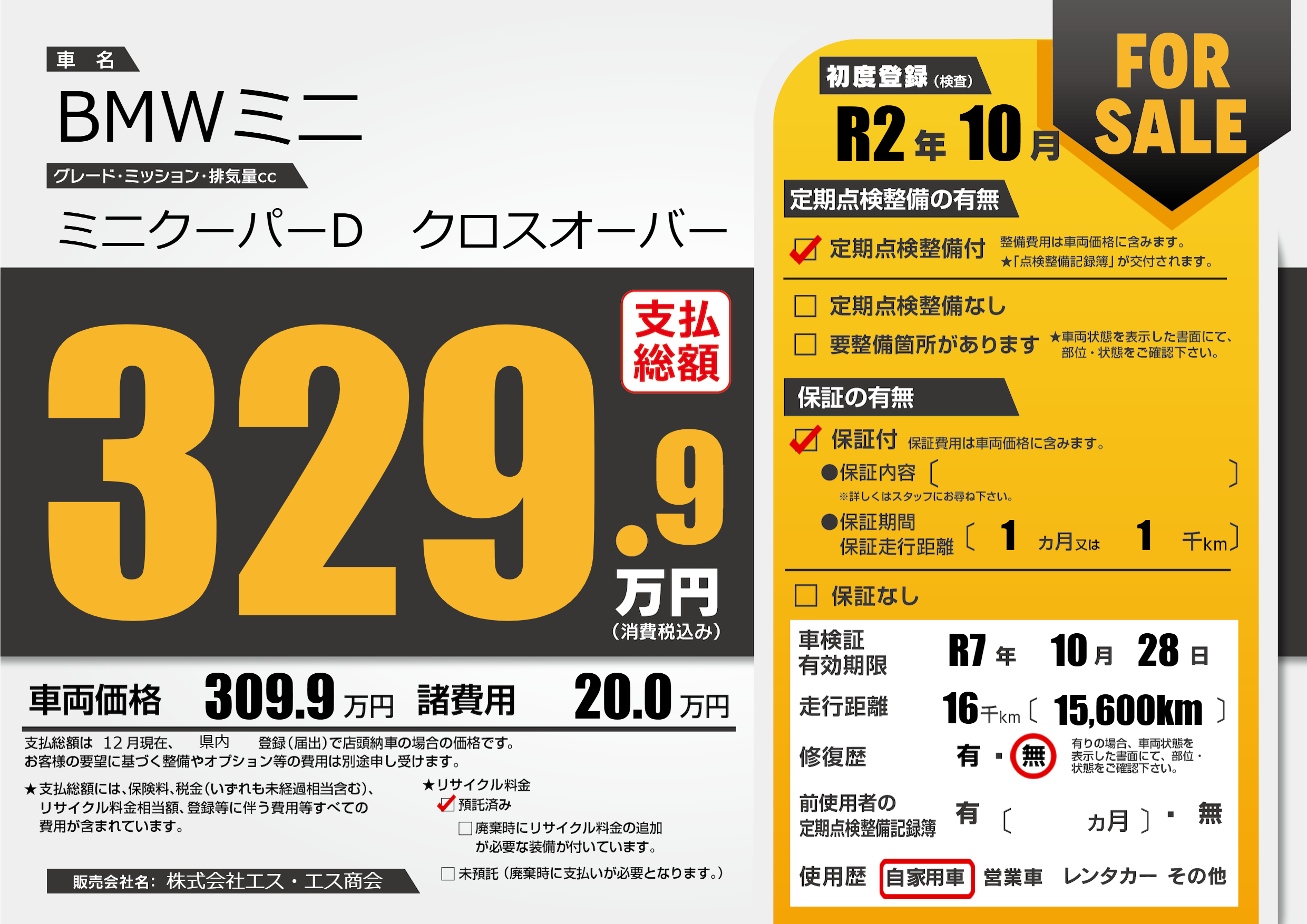| 走行キロ | 1.6万km | 初年度登録 | R2年10月 |