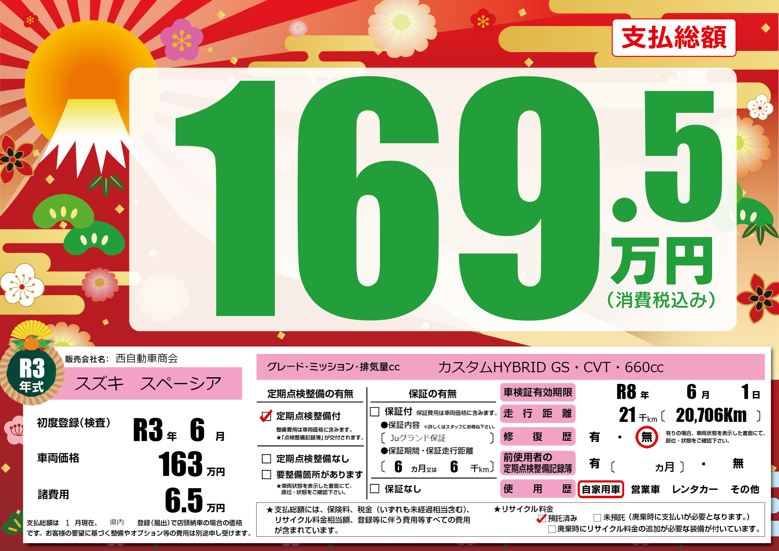 | 車名 | スズキ スペーシア | グレード ミッション 排気量 |