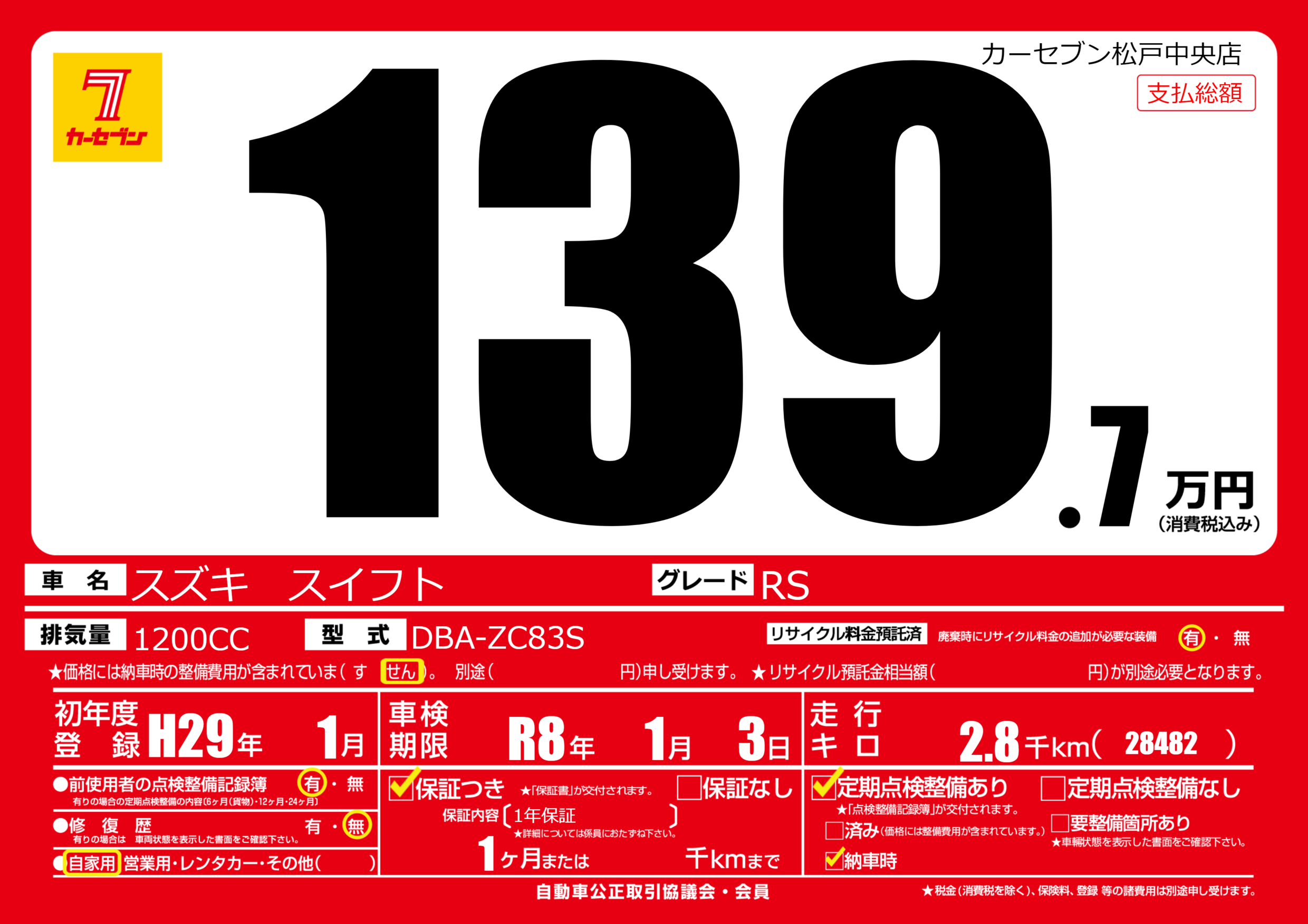 なし | 車検制限 | R8年1月3月 |