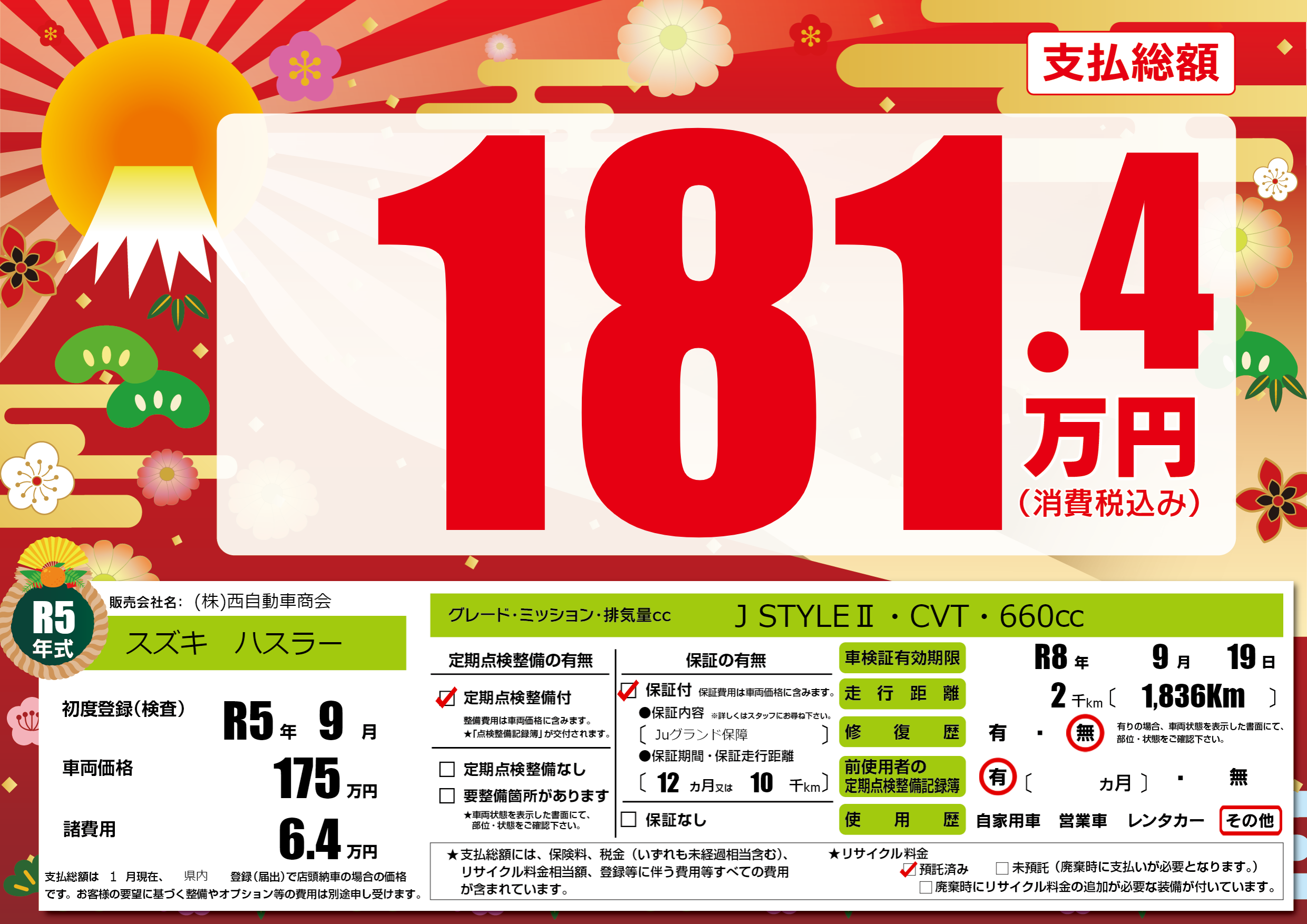 なし | 車検制限 | R8年9月19月 |
