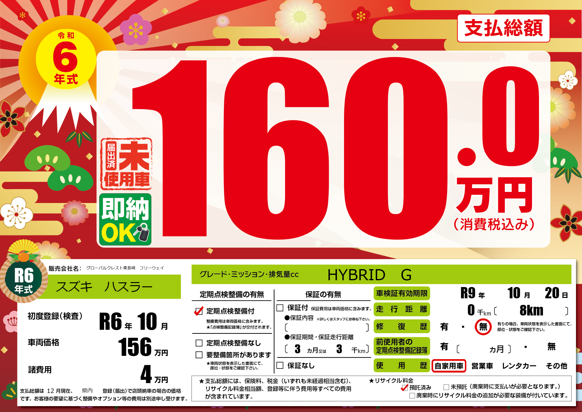 | 走行キロ | - | 初年度登録 | R6年10月 |