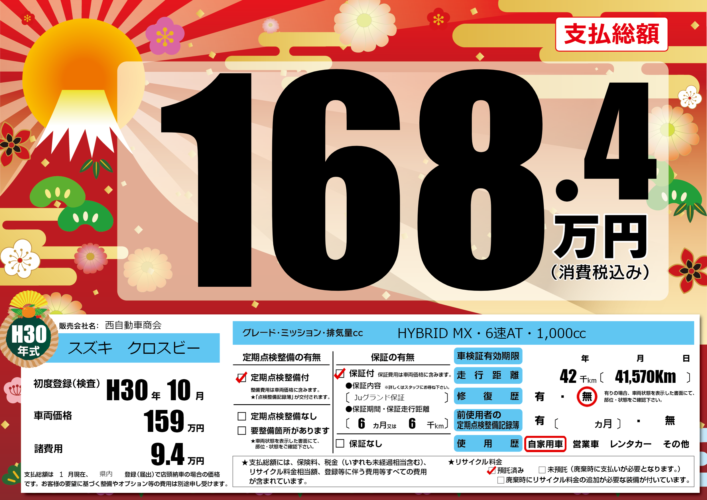 | 車名 | スズキ クロスビー | グレード ミッション 排気量 |
