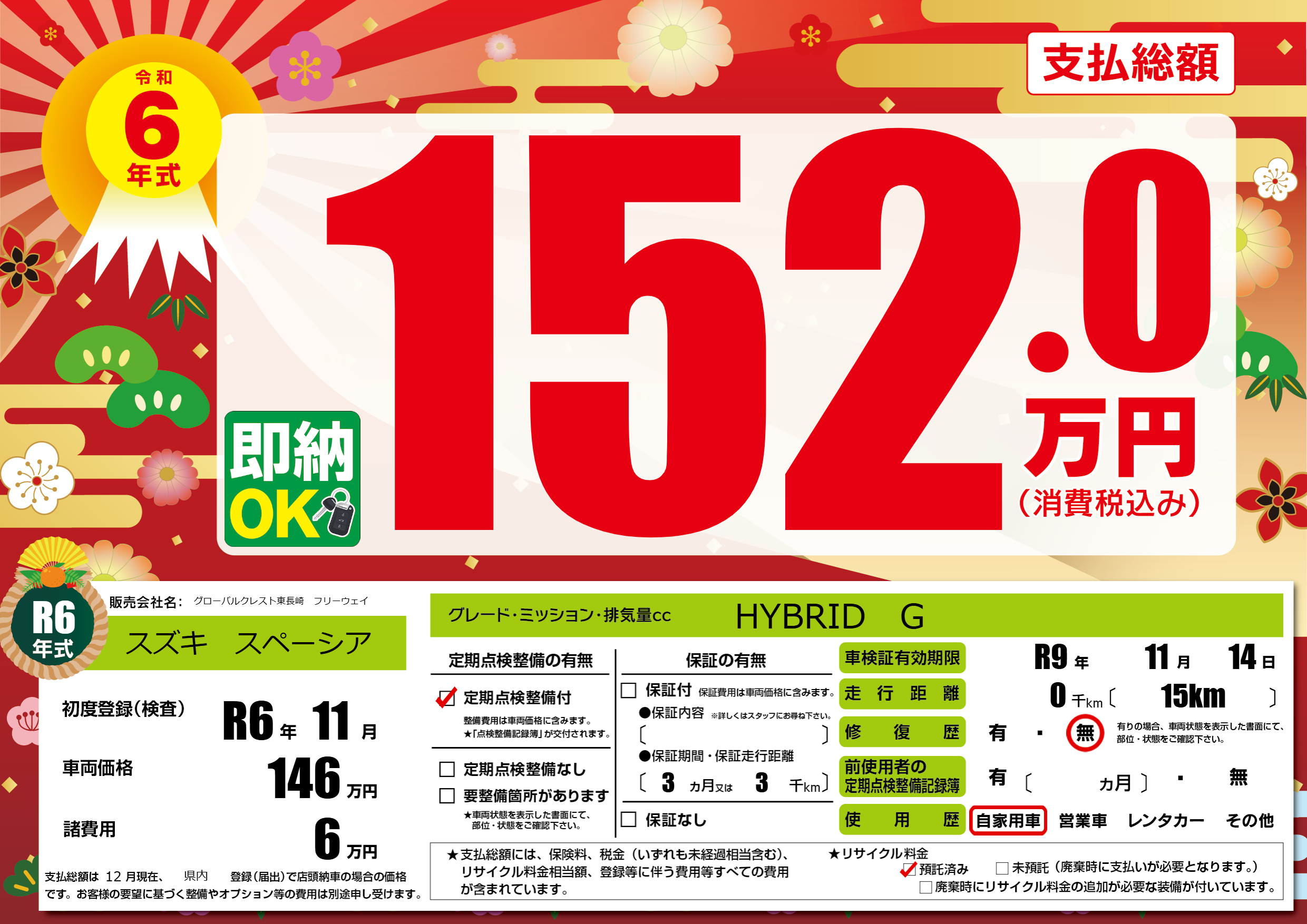 | 走行キロ | - | 初年度登録 | R6年11月 |