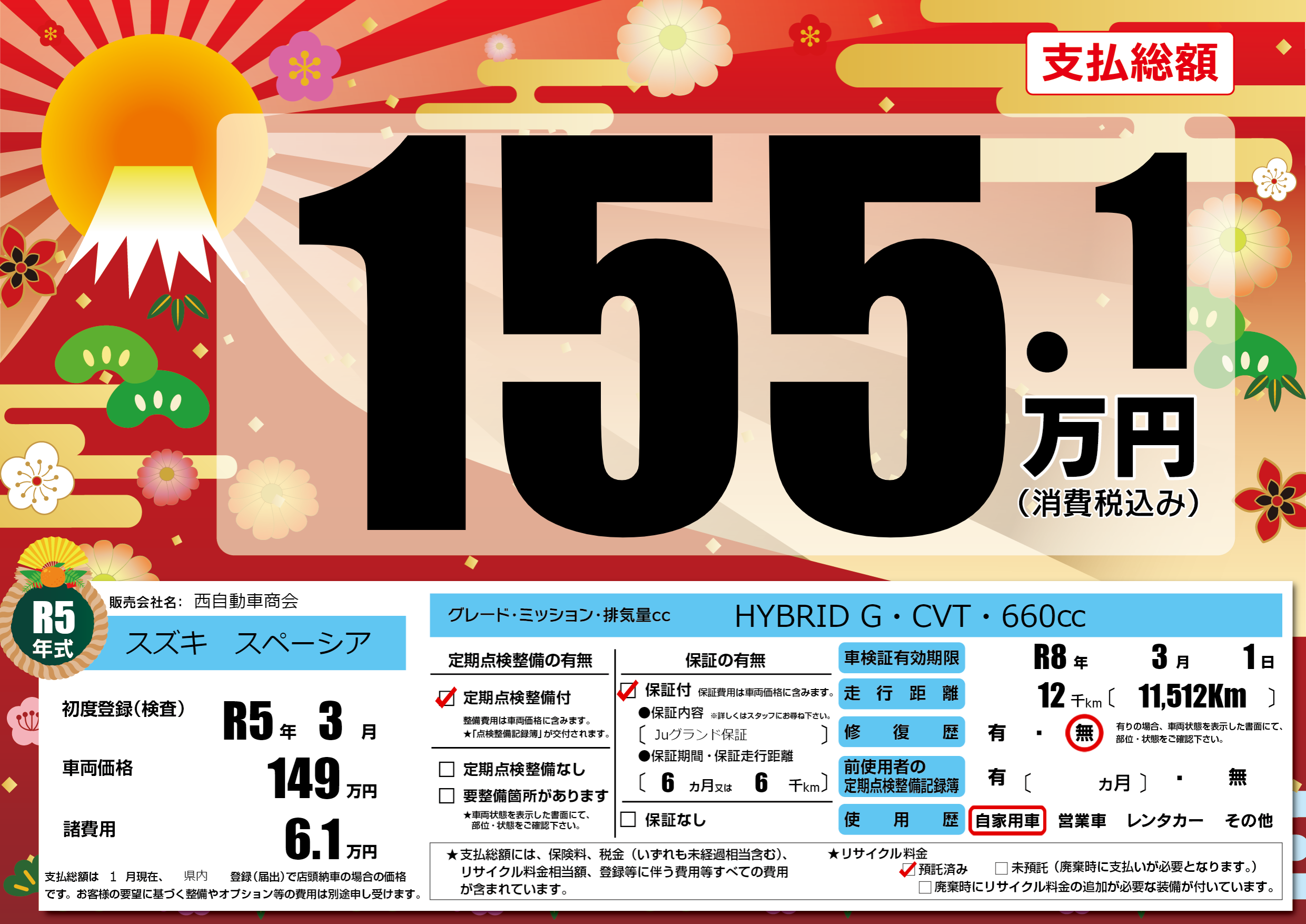 | 走行キロ | 1.2万km | 初年度登録 | R5年3月 |