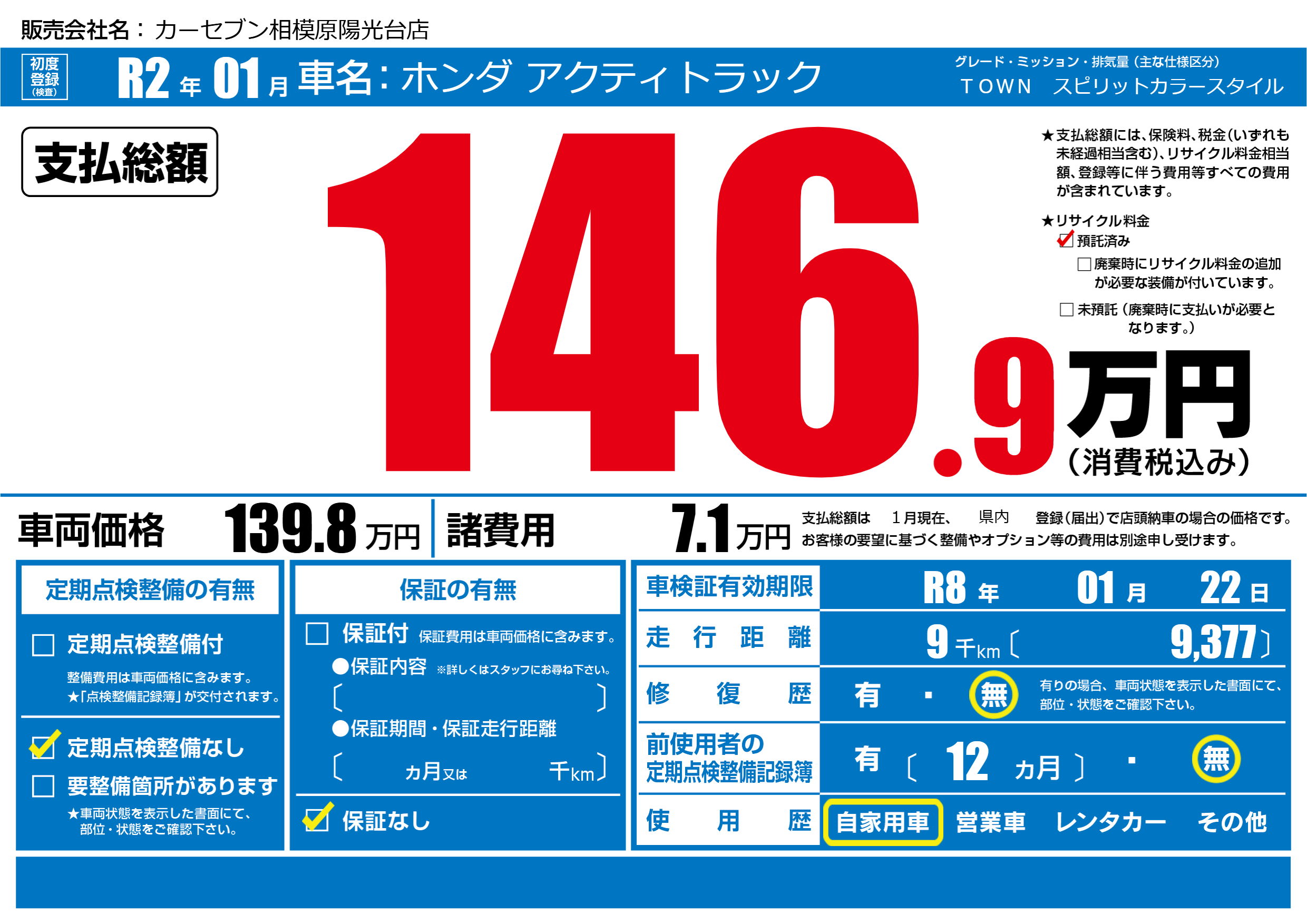 なし | 車検制限 | R8年01月22月 |