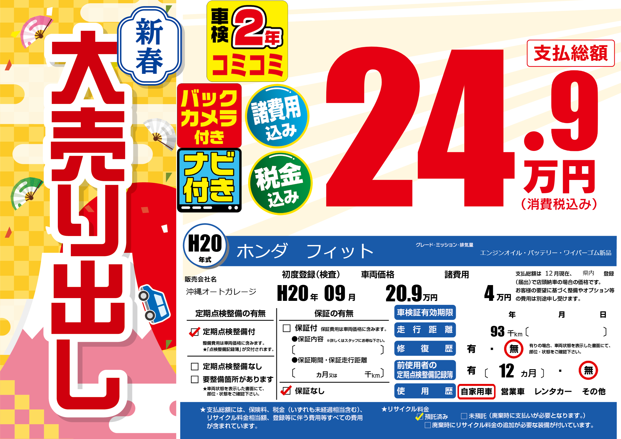 | 走行キロ | 9.3万km | 初年度登録 | H20年09月 |