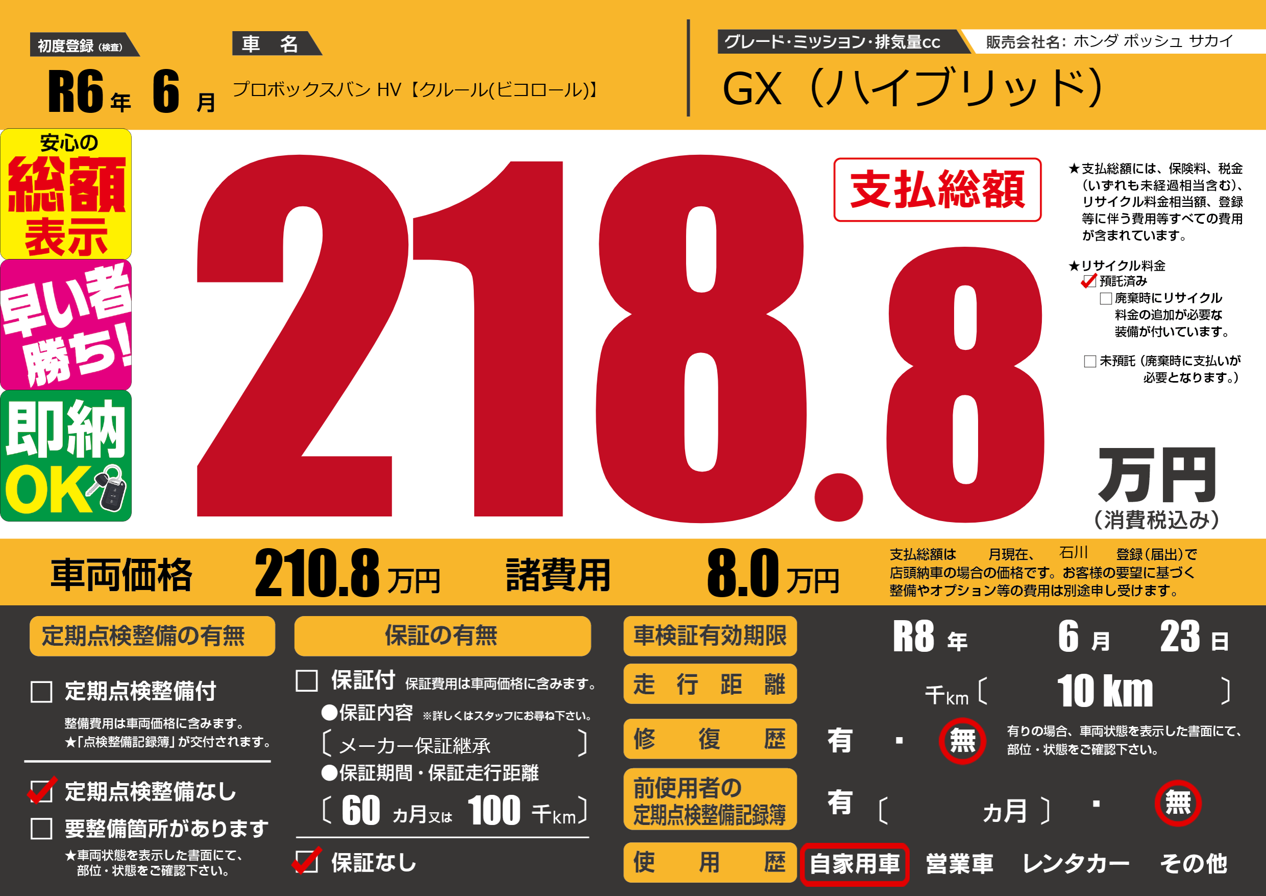 | 走行キロ | - | 初年度登録 | R6年6月 |