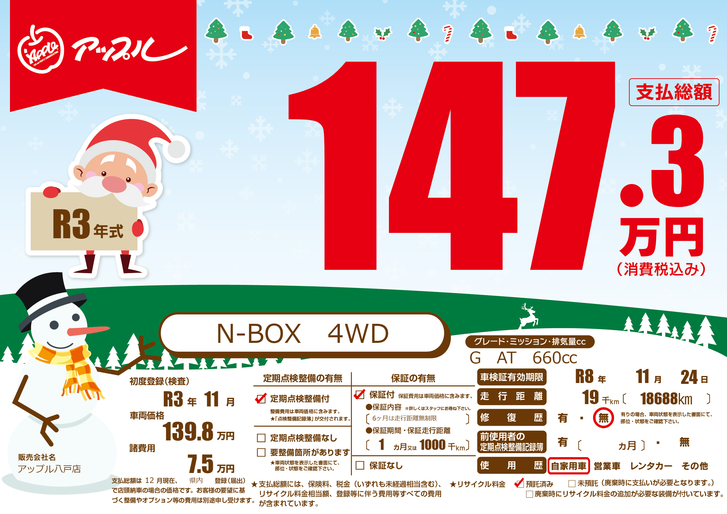 | 車名 | N-BOX 4WD | グレード ミッション 排気量 |