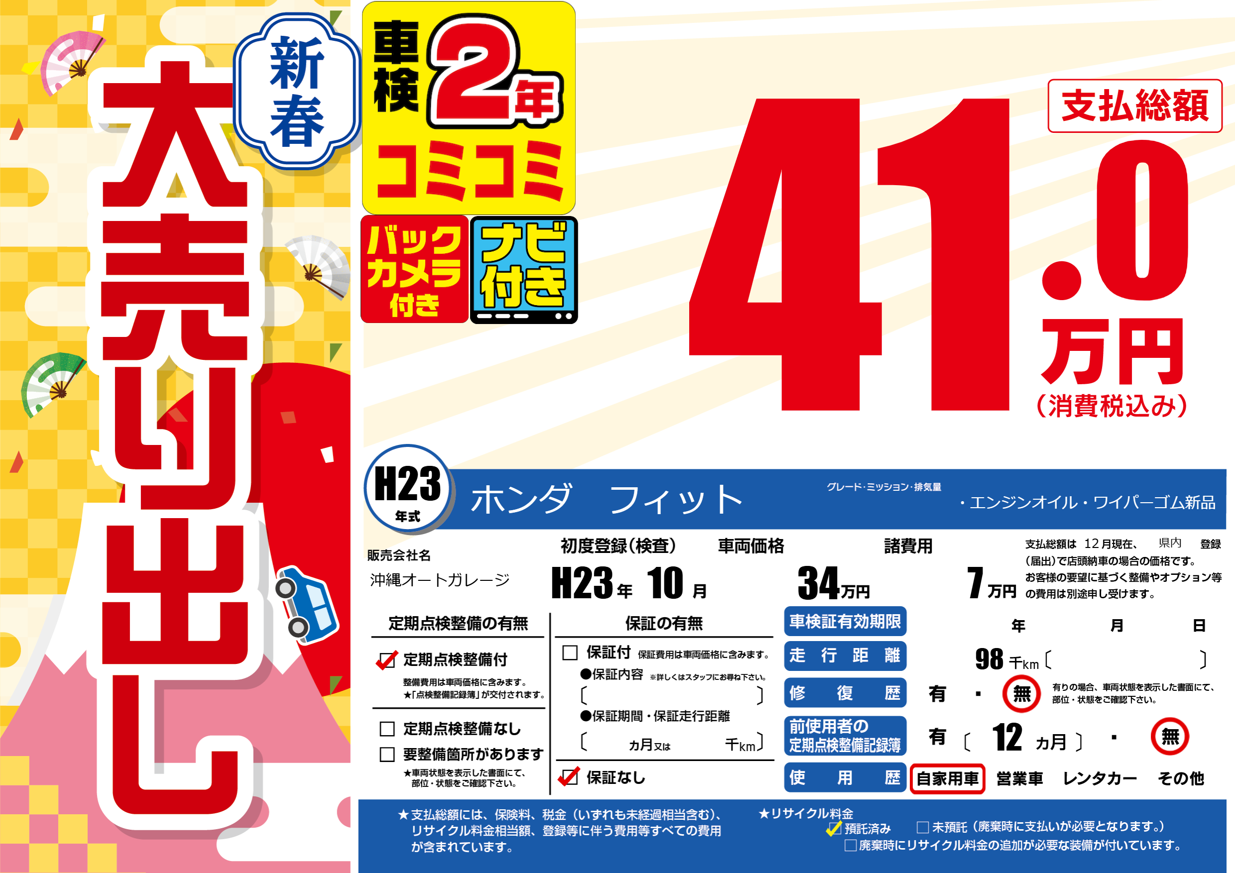 | 走行キロ | 9.8万km | 初年度登録 | H23年10月 |