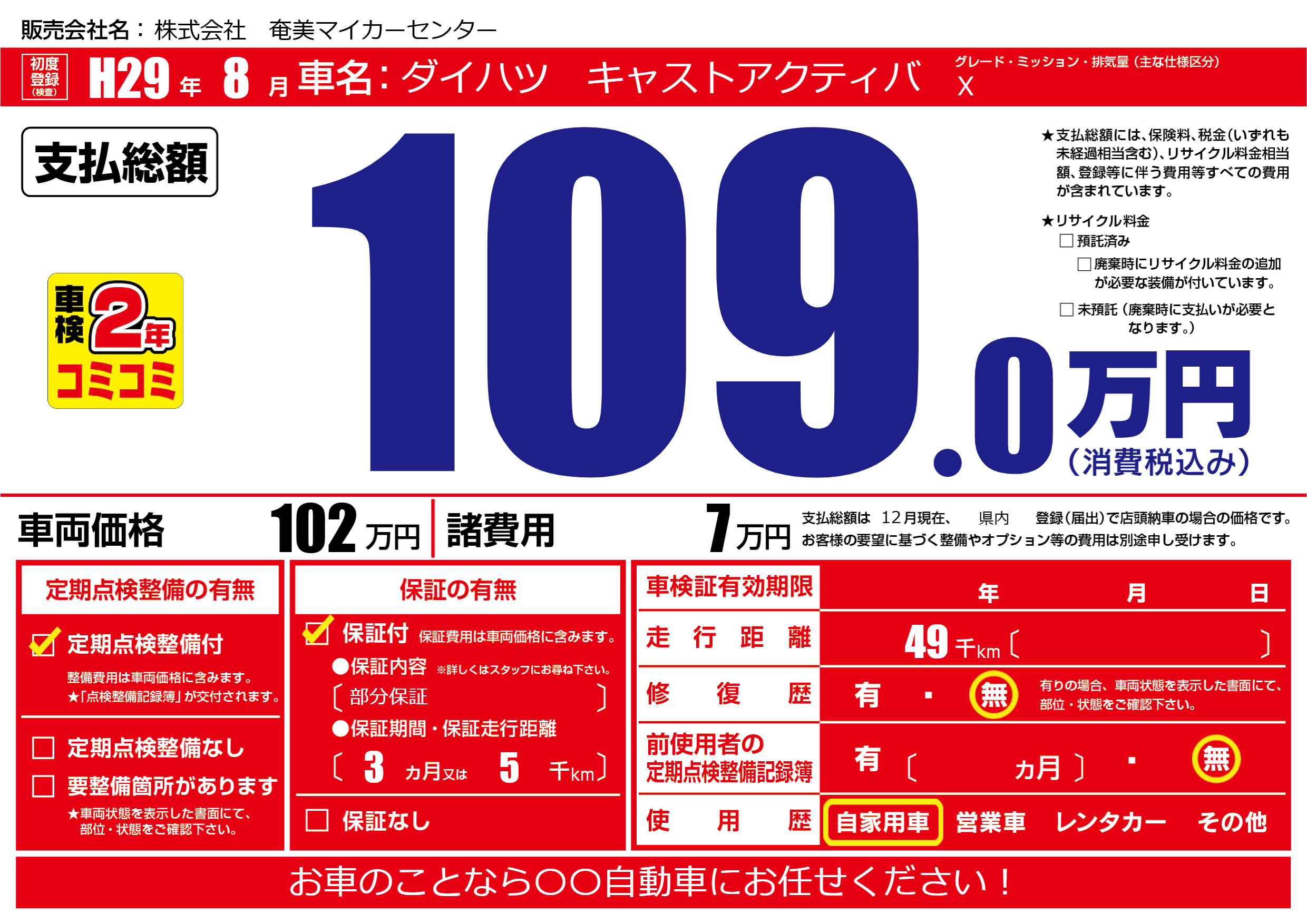 | 定期点検整備 | 定期点検整備あり | ||