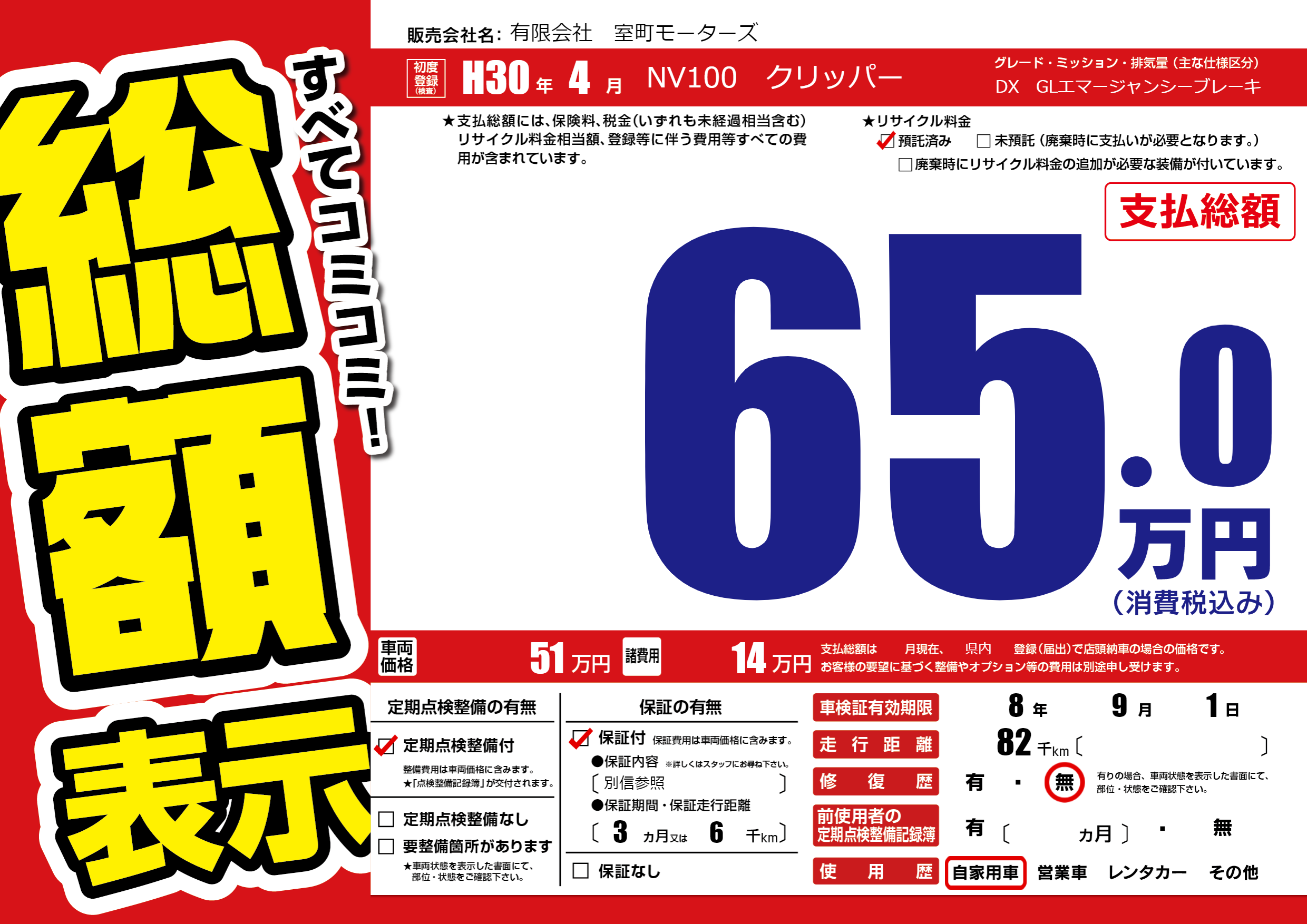 | 車名 | NV100 クリッパー | グレード ミッション 排気量 |