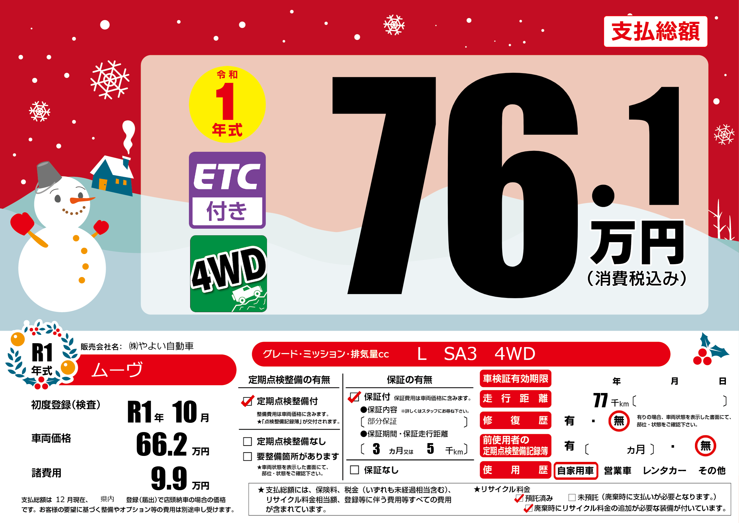 | 車名 | ムーヴ | グレード ミッション 排気量 |