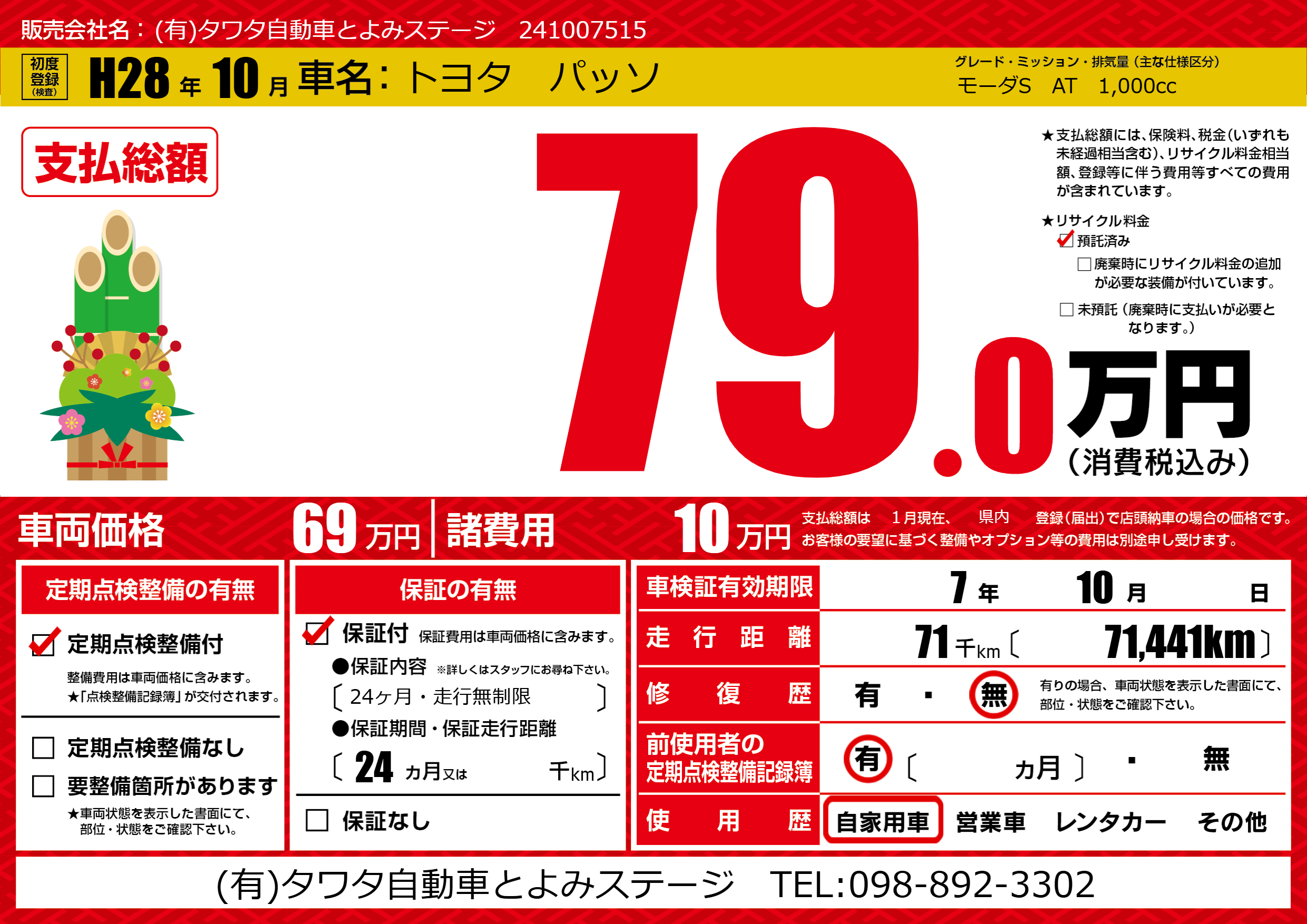 | 車検制限 | 7年 10月 - 日 | ||