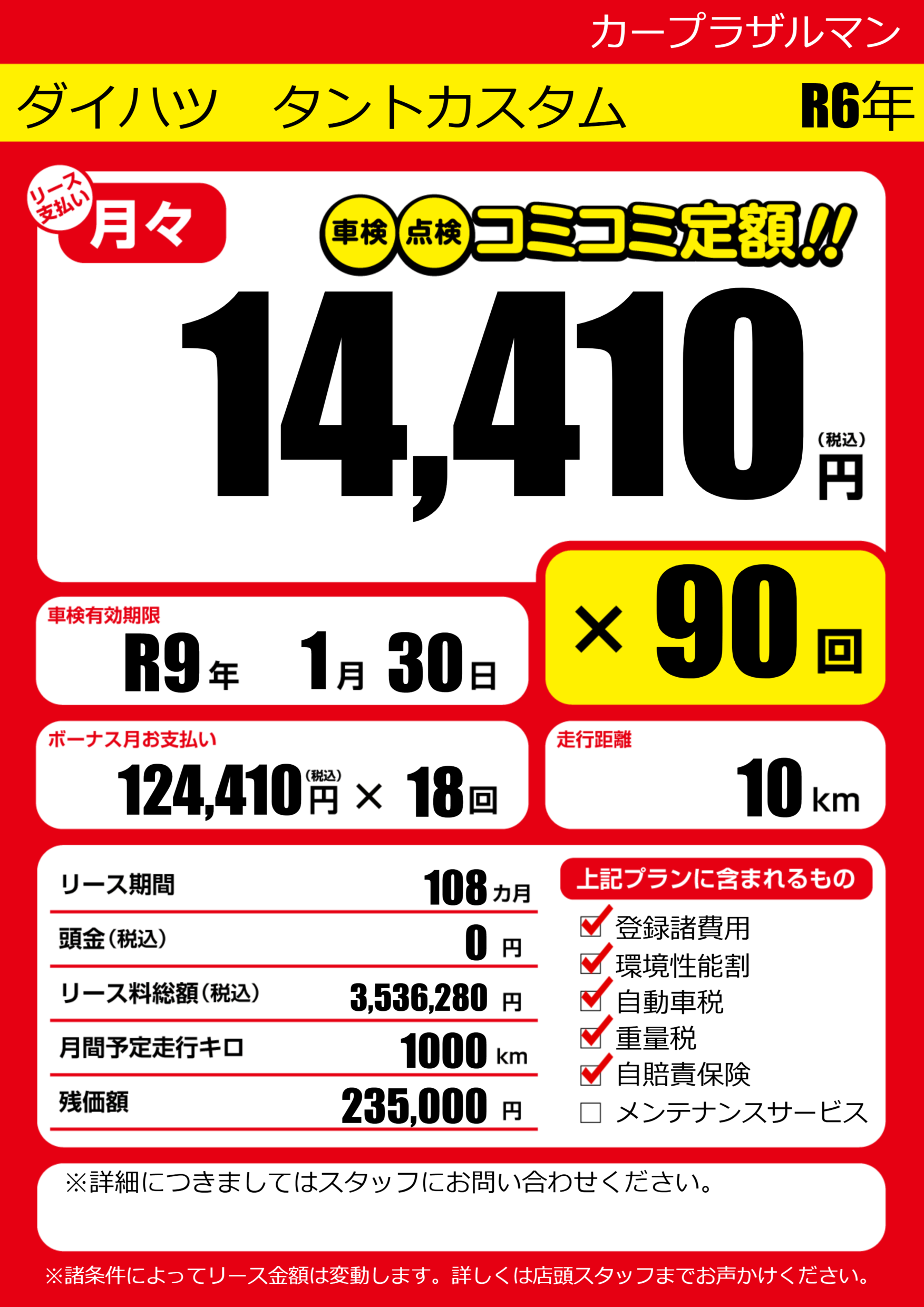 | 車名 | ダイハツ タントカスタム | グレード ミッション 排気量 |