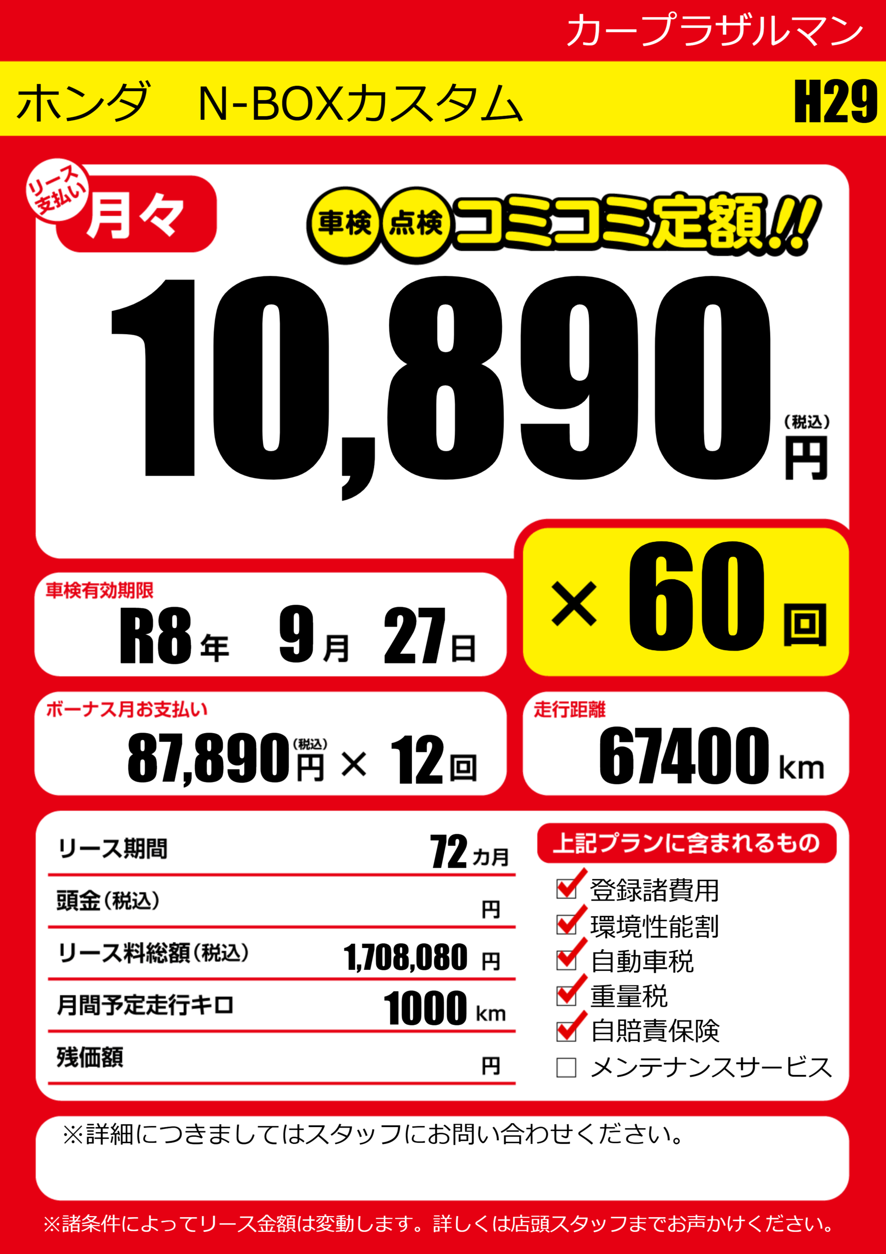 | 車名 | ホンダ N-BOXカスタム | グレード ミッション 排気量 |