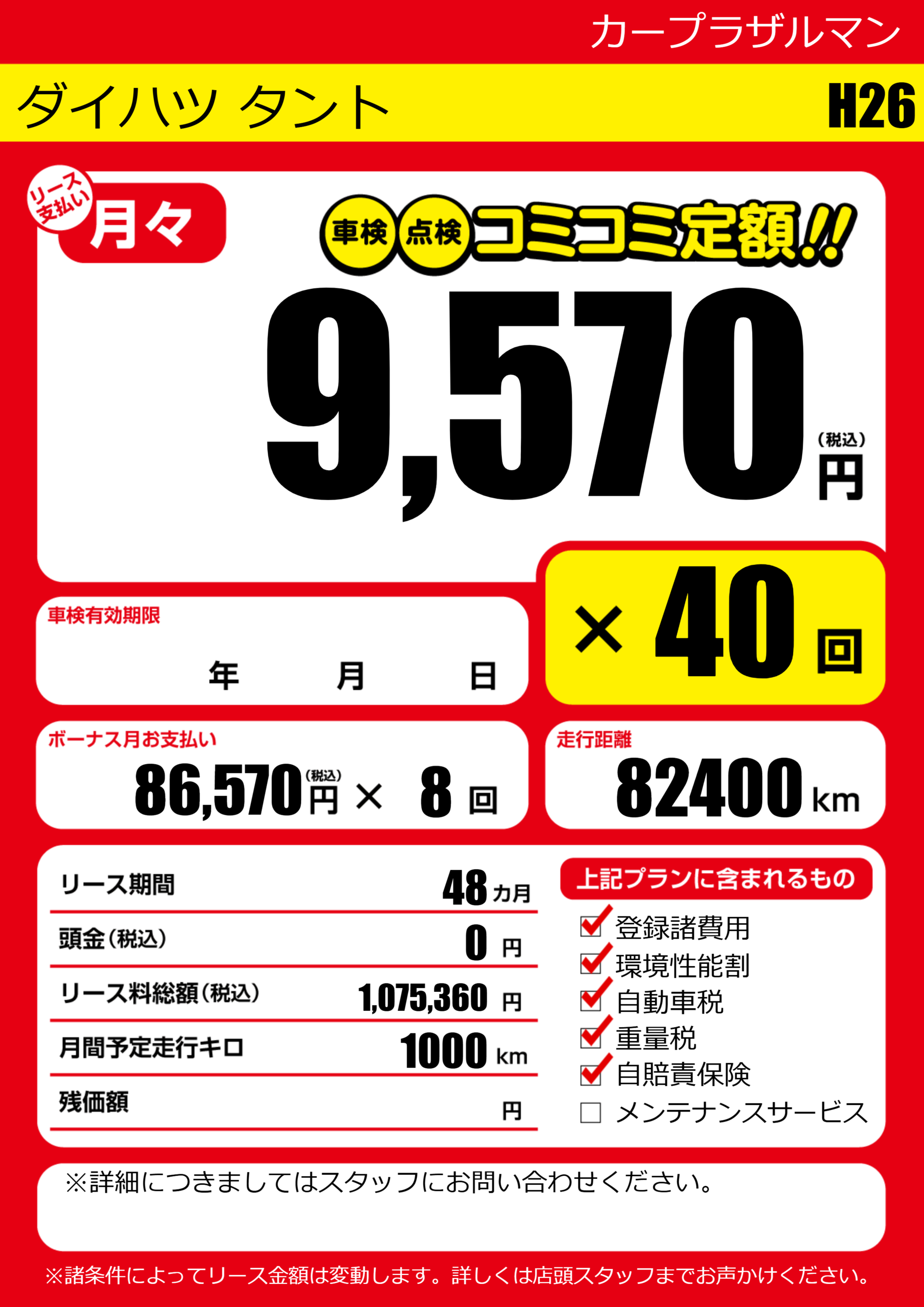 | 車名 | ダイハツ タント | グレード ミッション 排気量 |