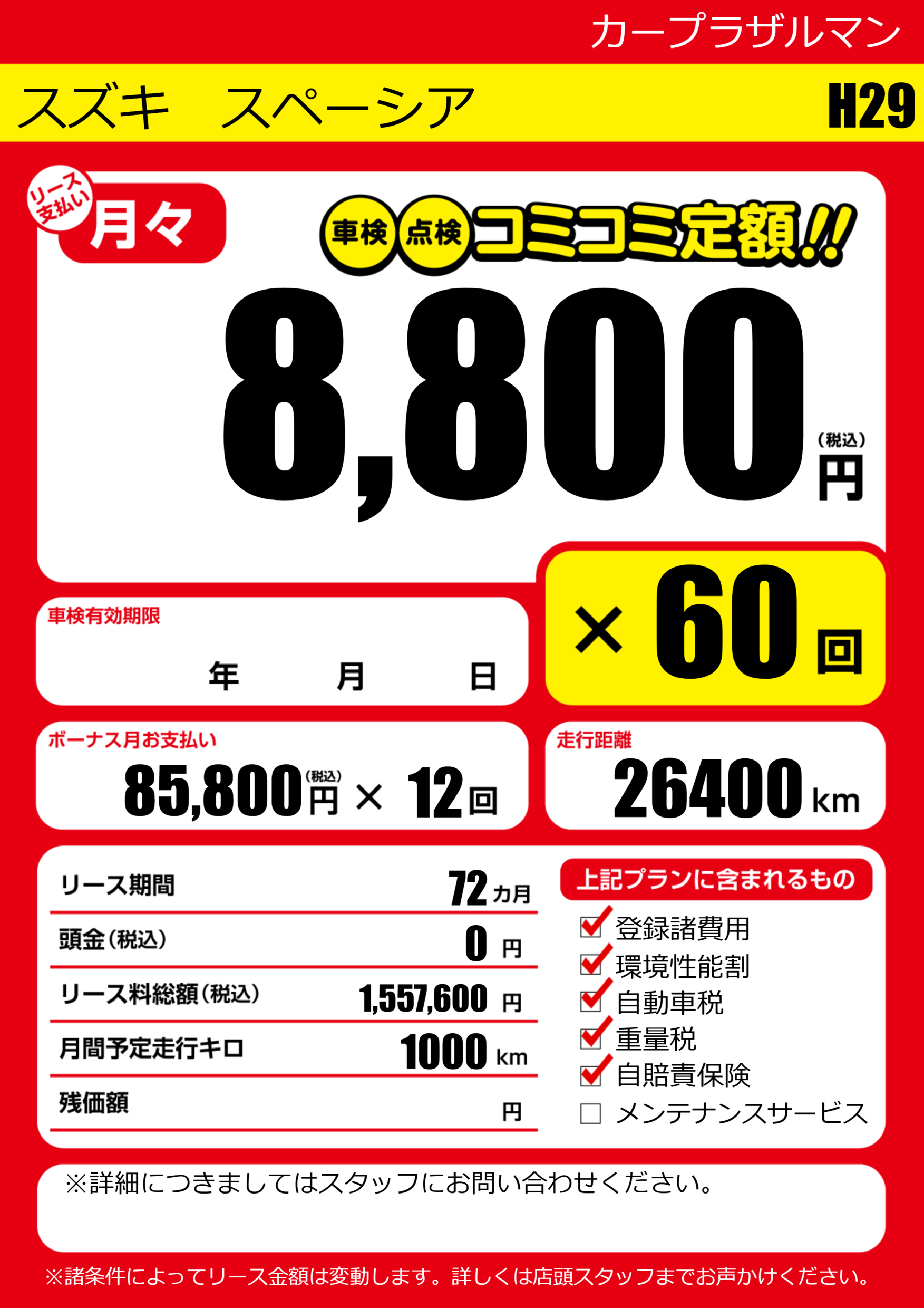 | 車名 | スズキ スペーシア | グレード ミッション 排気量 |