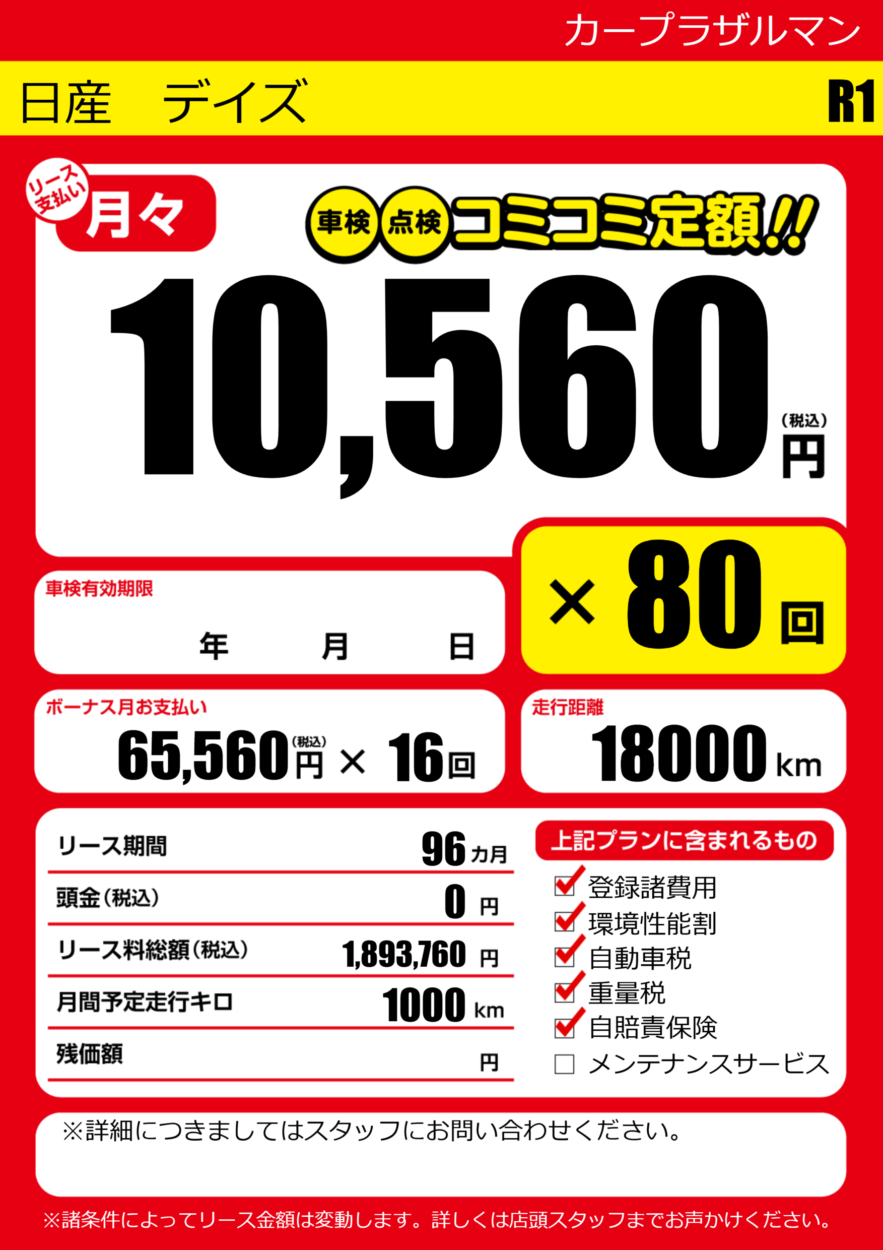 | 車名 | 日産 デイズ | グレード ミッション 排気量 |