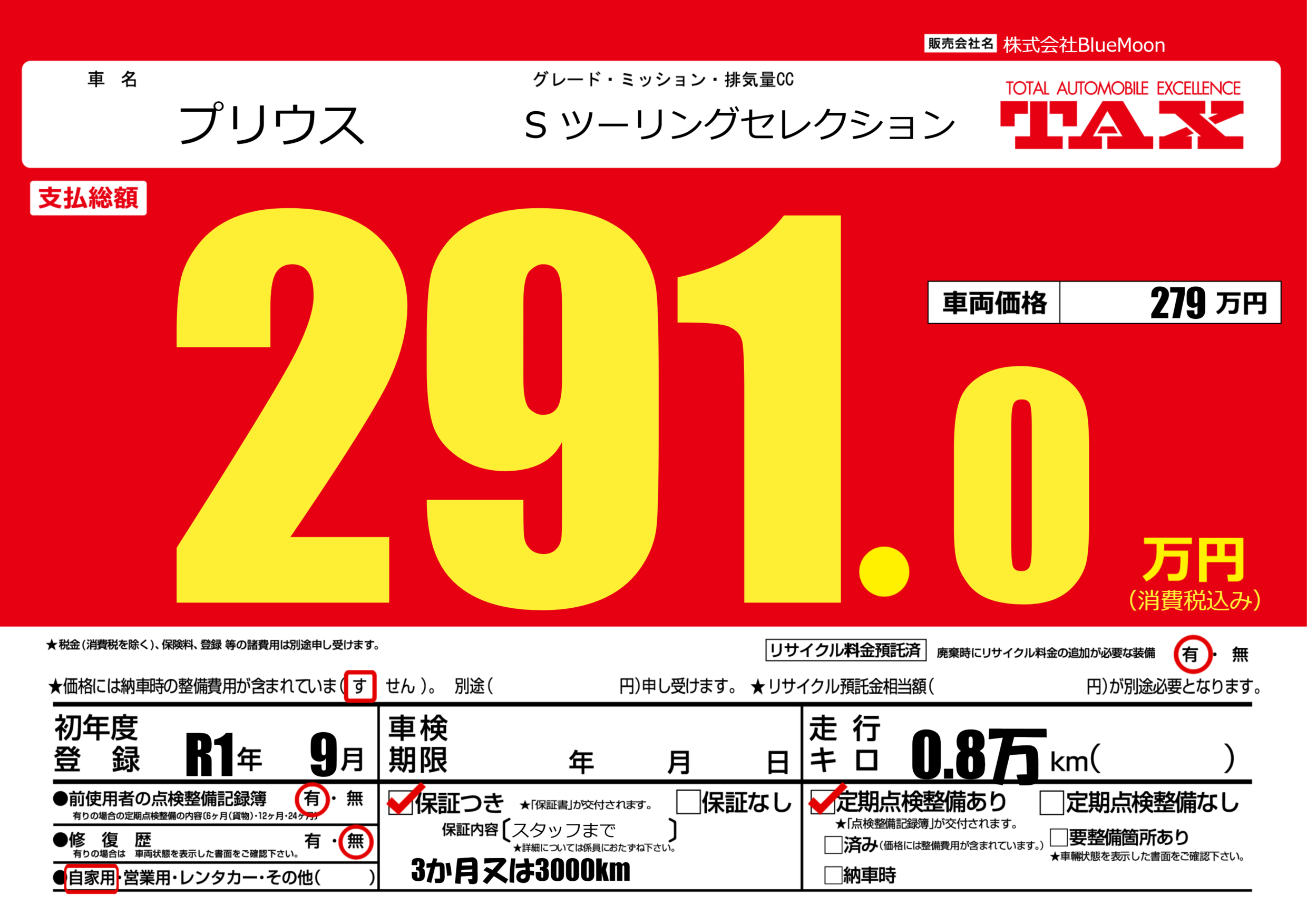 | 車名 | プリウス | グレード ミッション 排気量 |