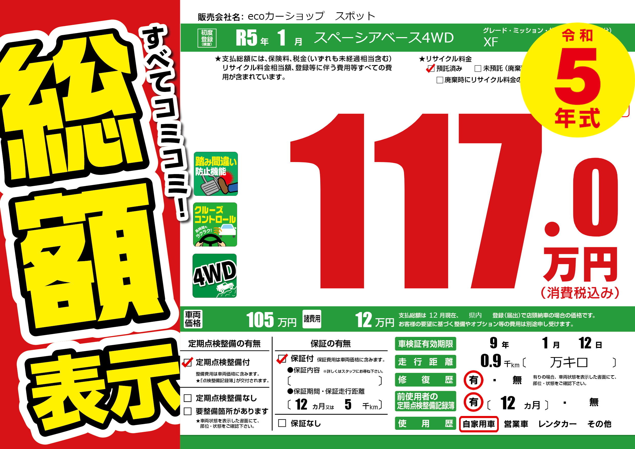| 走行キロ | - | 初年度登録 | R5年1月 |
