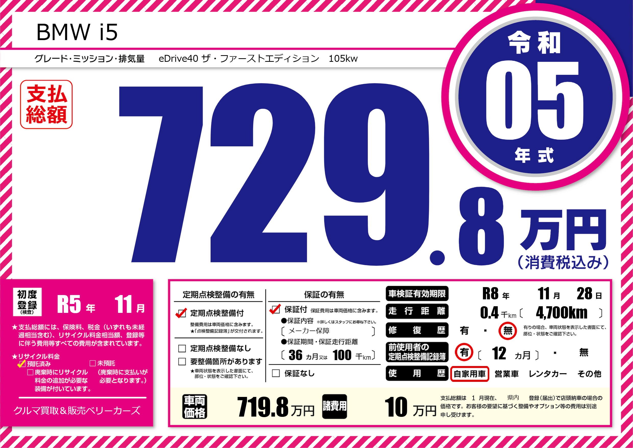| 車名 | BMW i5 | グレード ミッション 排気量 |
