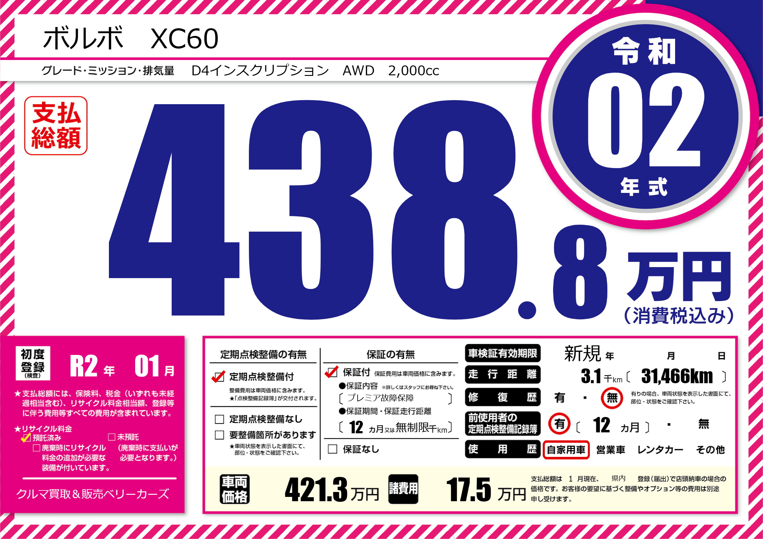なし | 車検制限 | 新規年---月---月 |