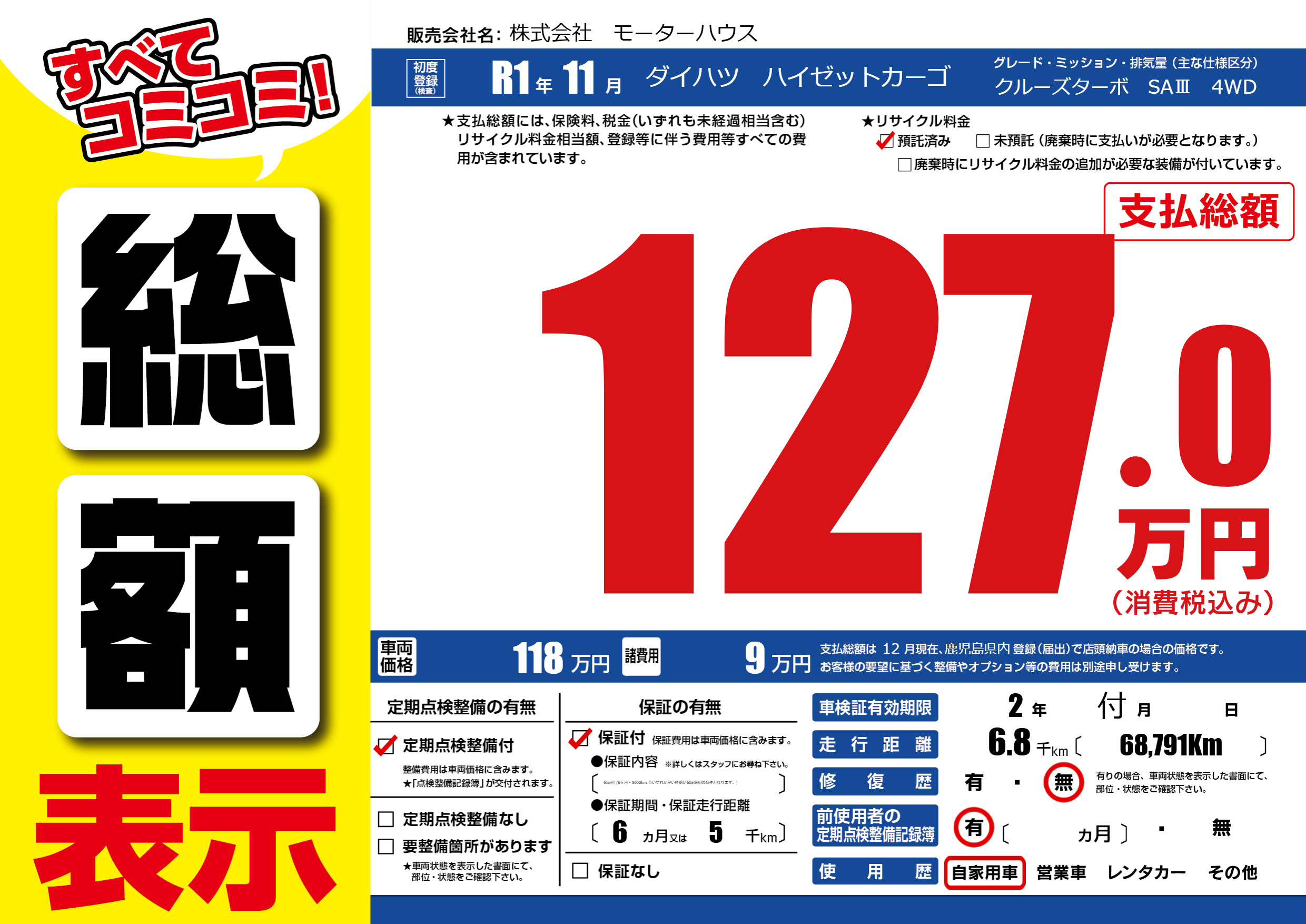 | 定期点検整備 | 定期点検整備あり | ||