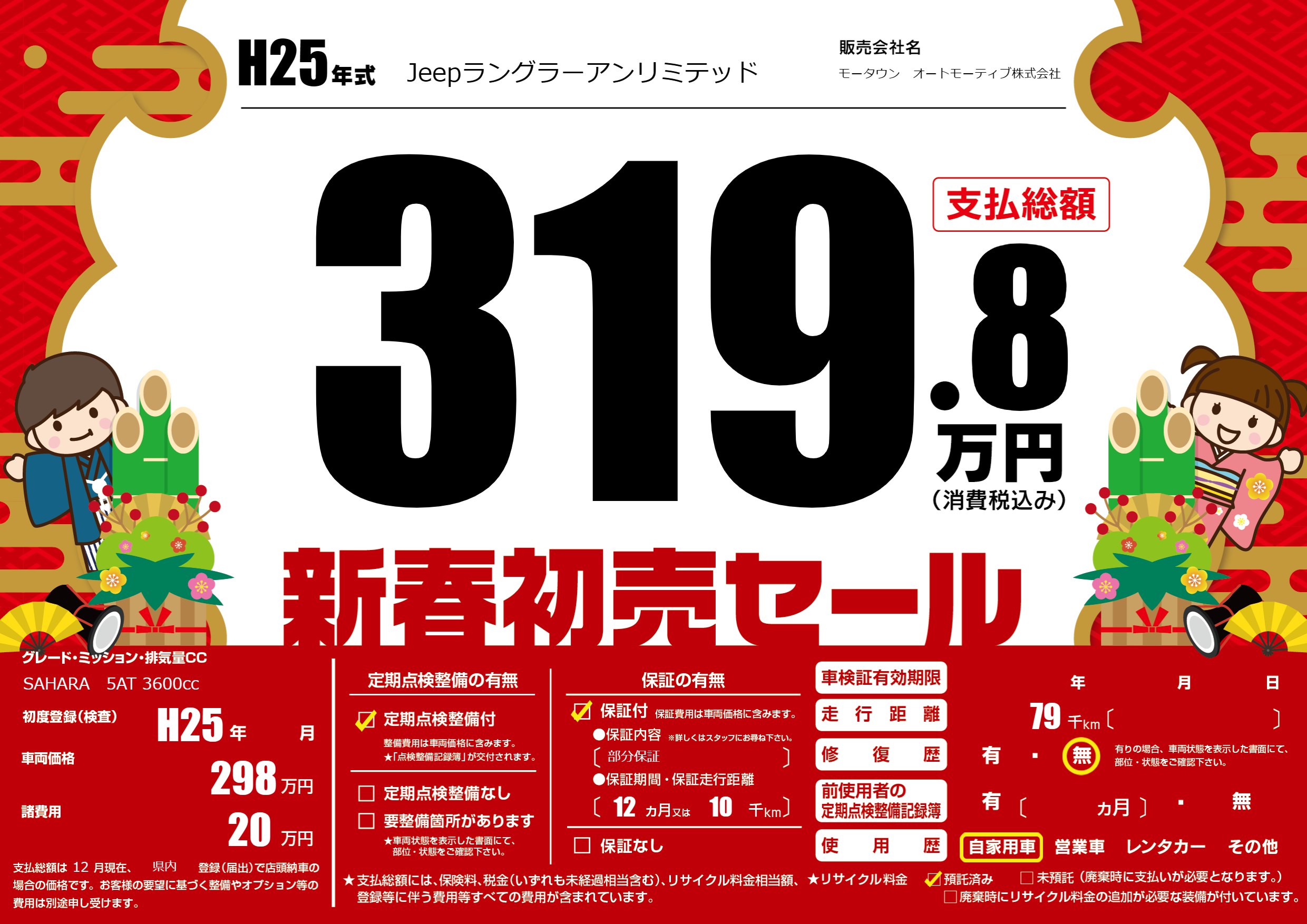 保証付き 保証内容(部分保証) 12ヶ月または(10)千kmまで |