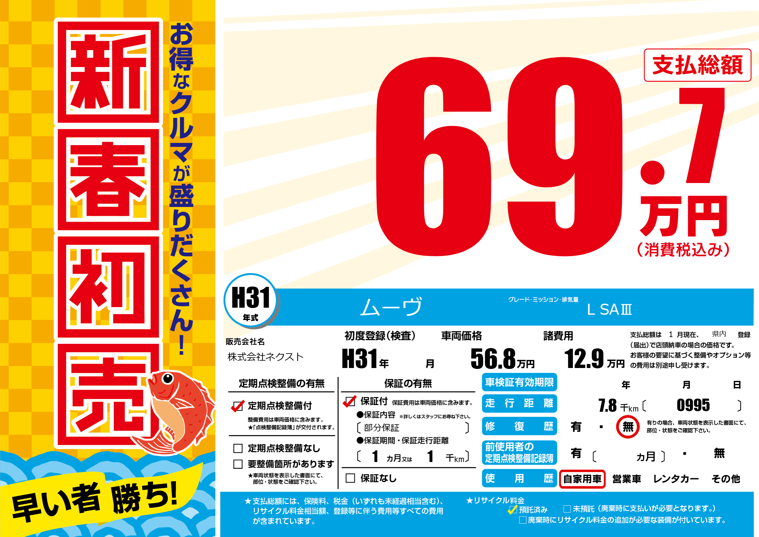 | 初年度登録 | H31年 | ||