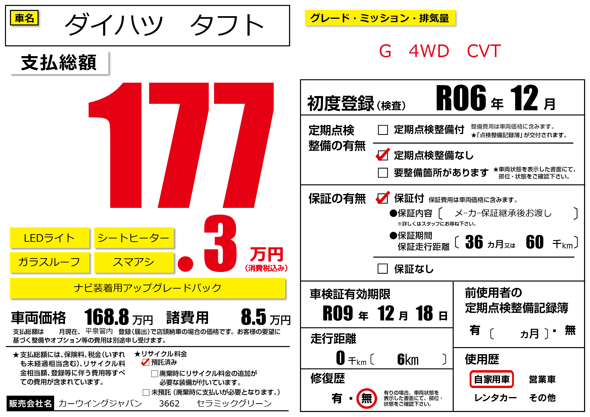 | 走行キロ | - | 初年度登録 | R06年12月 |