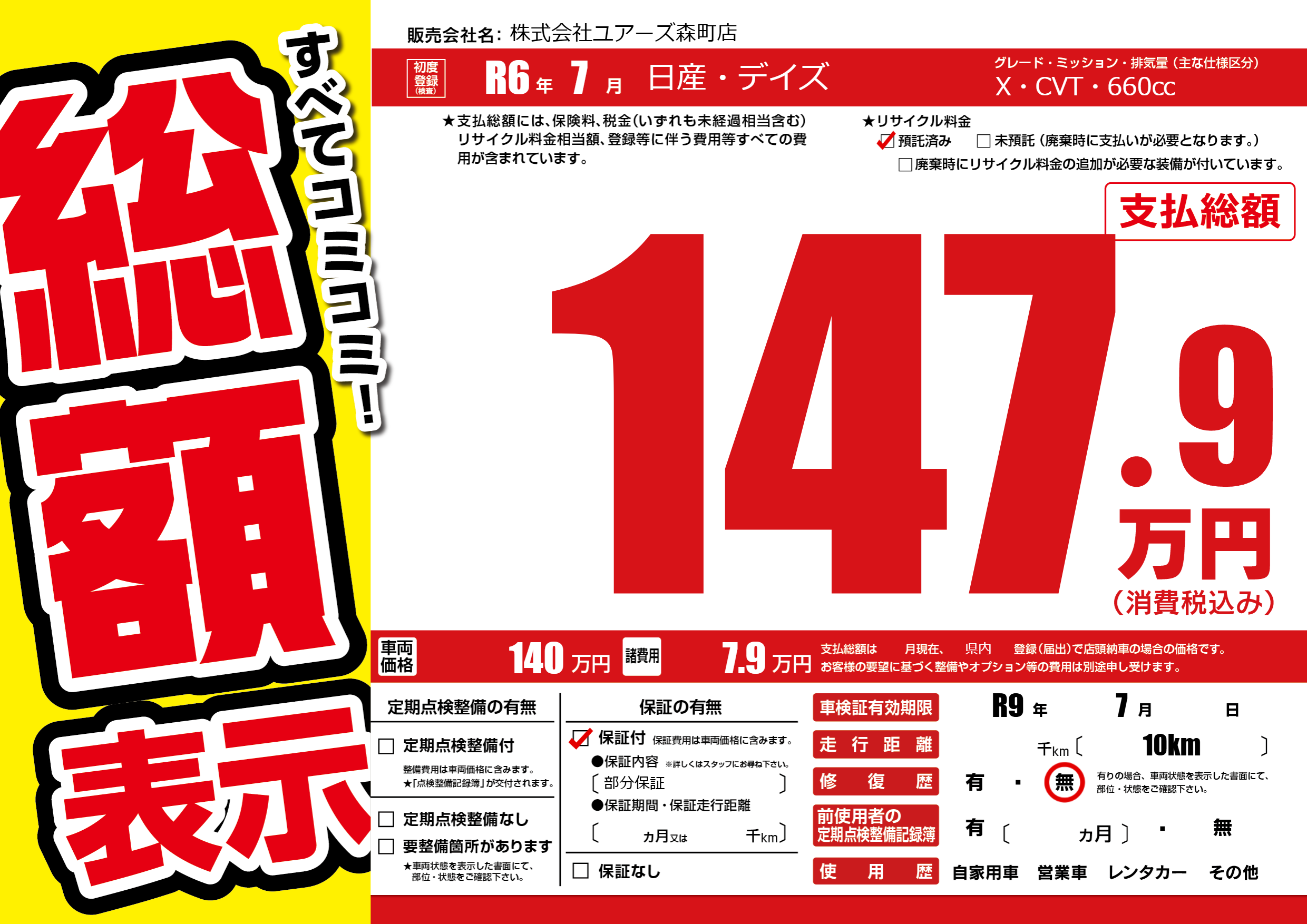 なし | 車検制限 | R9年7月---月 |
