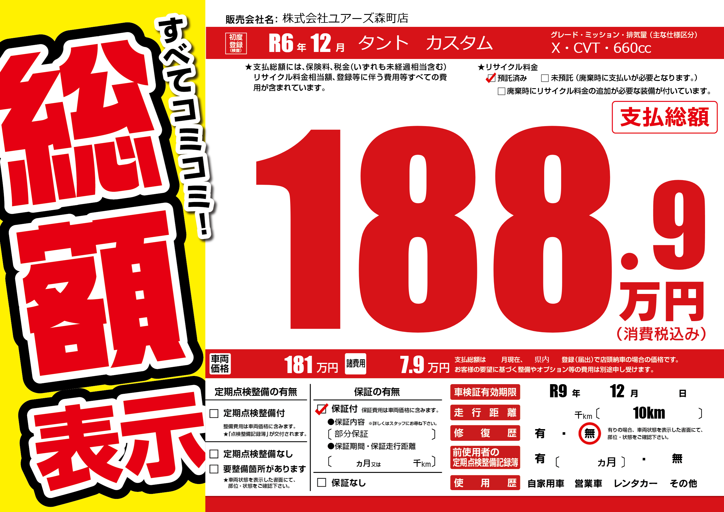 なし | 車検制限 | R9年12月---月 |