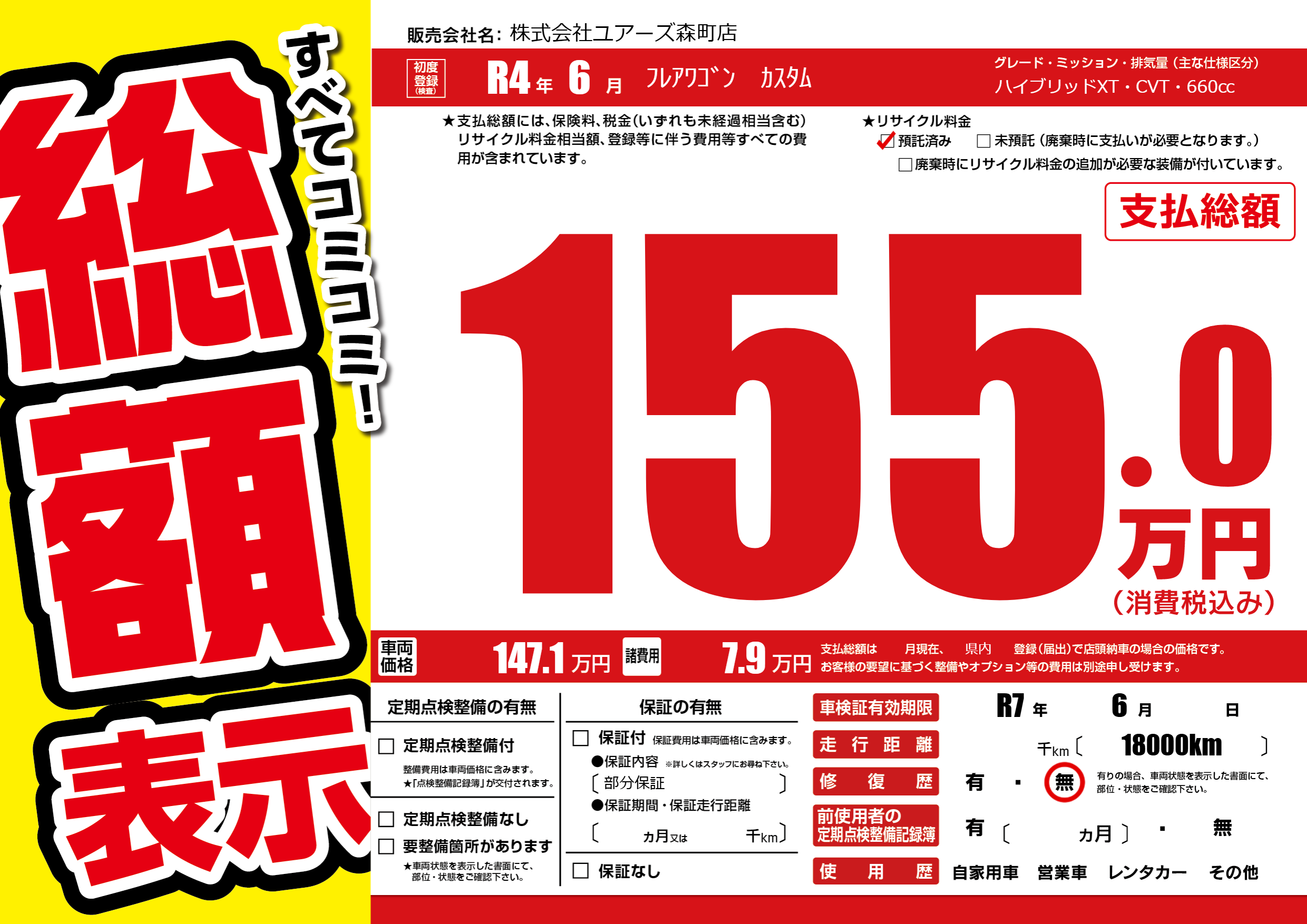 | 車検制限 | R7年 6月 - 日 | ||