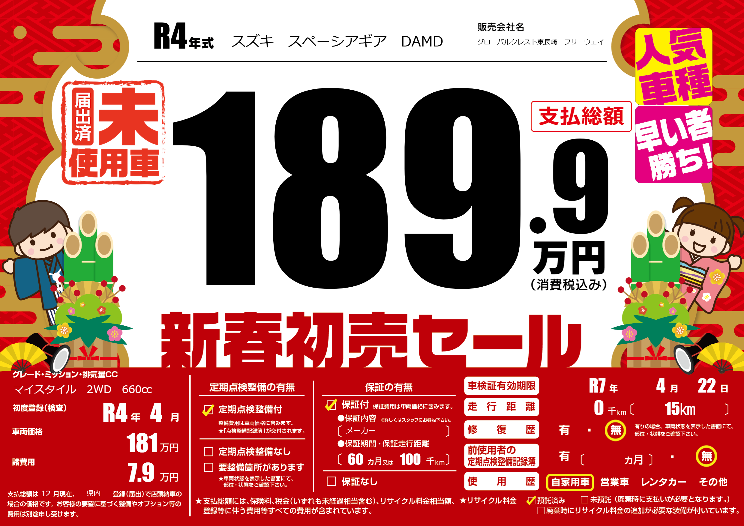 | 走行キロ | - | 初年度登録 | R4年4月 |