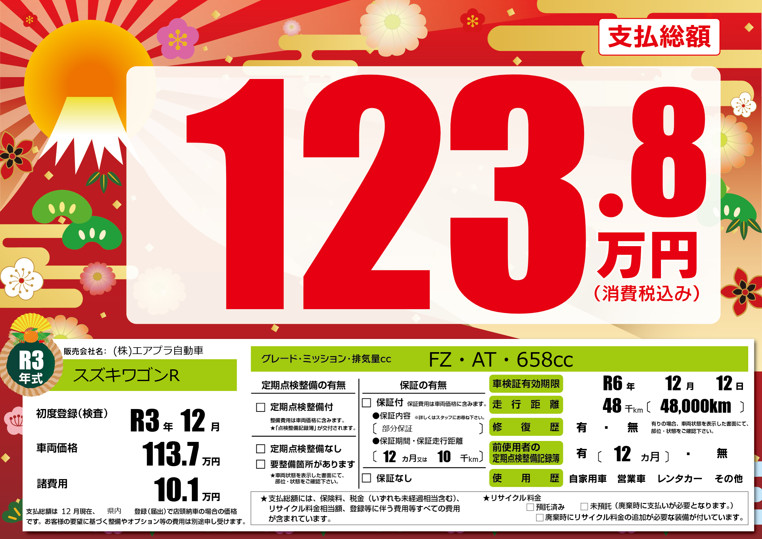 | 車名 | スズキワゴンR | グレード ミッション 排気量 |