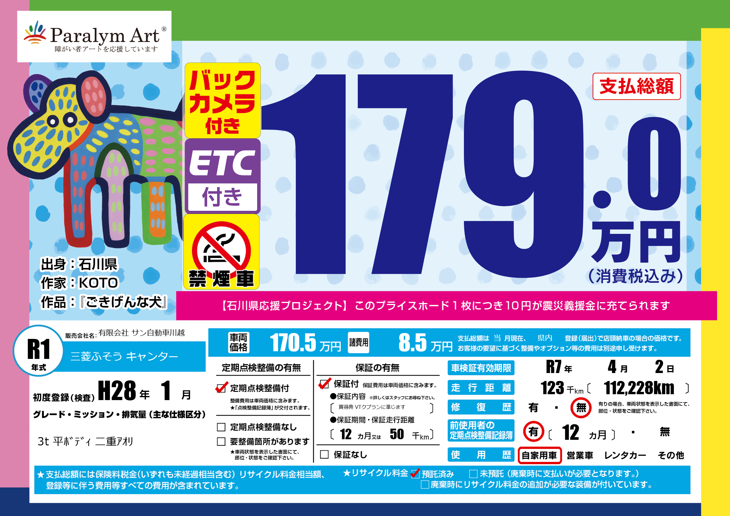 | 走行キロ | 12.3万km | 初年度登録 | H28年1月 |