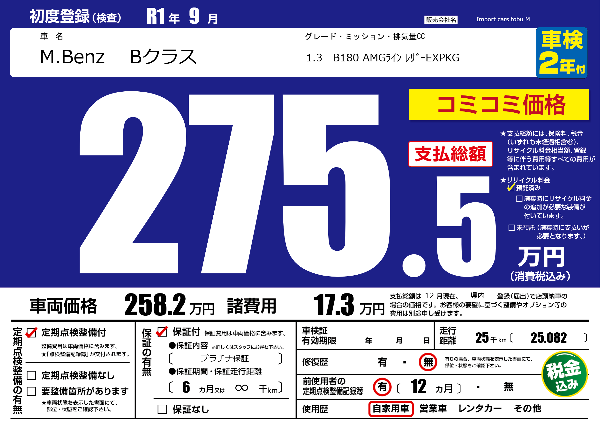 保証付き 保証内容( プラチナ保証) 6ヶ月または(∞)千kmまで |