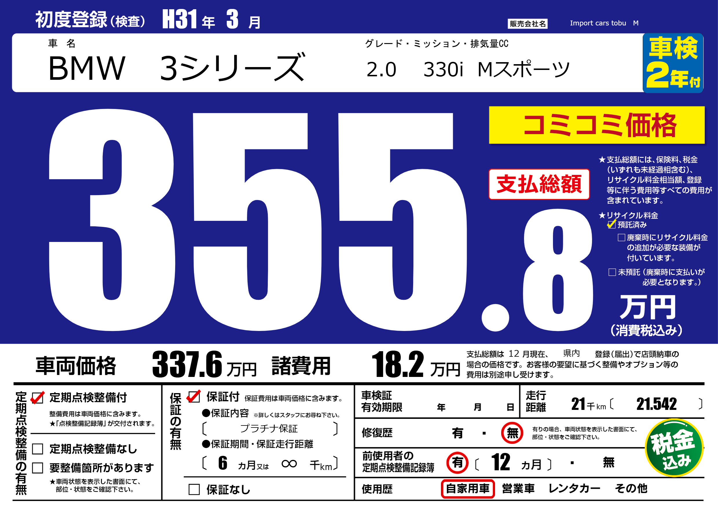 保証付き 保証内容( プラチナ保証) 6ヶ月または(∞)千kmまで |