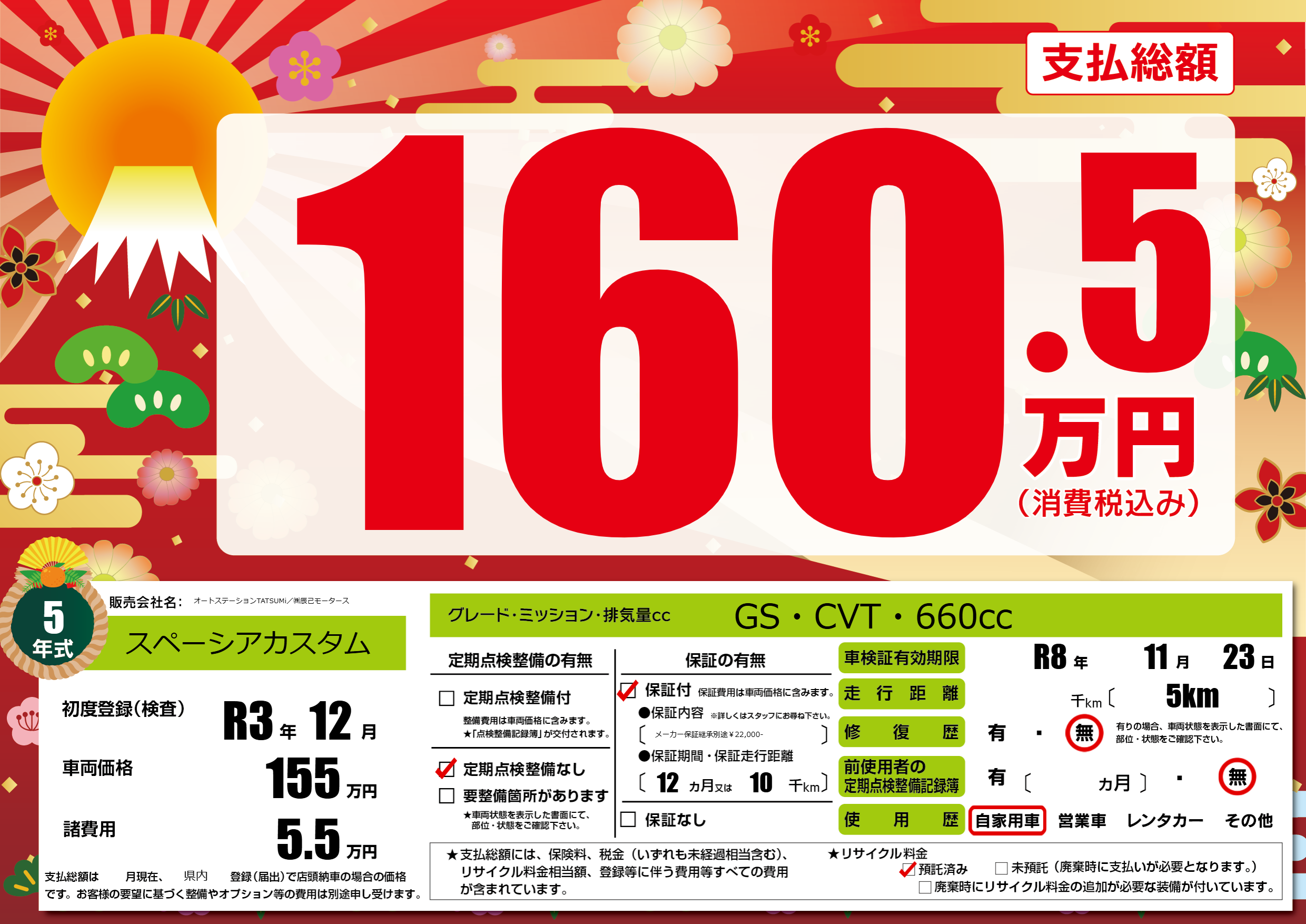 | 車名 | スペーシアカスタム | グレード ミッション 排気量 |