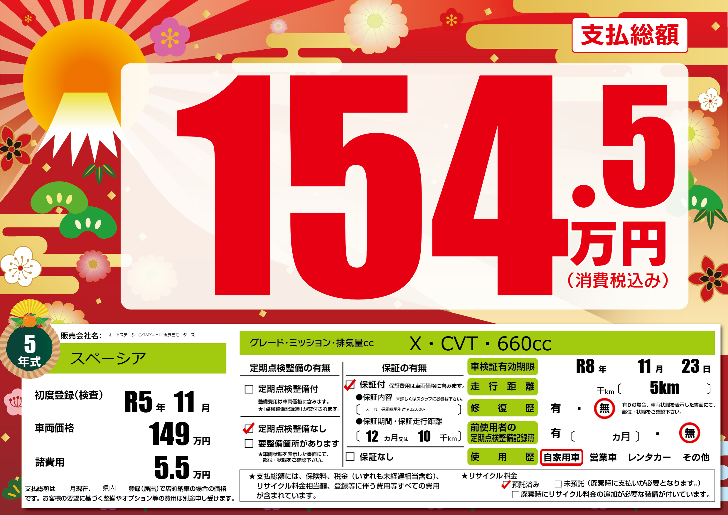 | 走行キロ | - | 初年度登録 | R5年11月 |