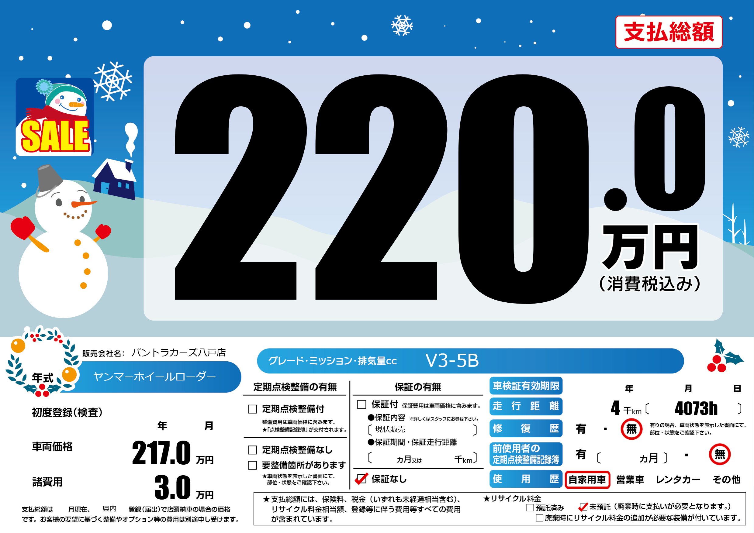 | 車名 | ヤンマーホイールローダー | グレード ミッション 排気量 |