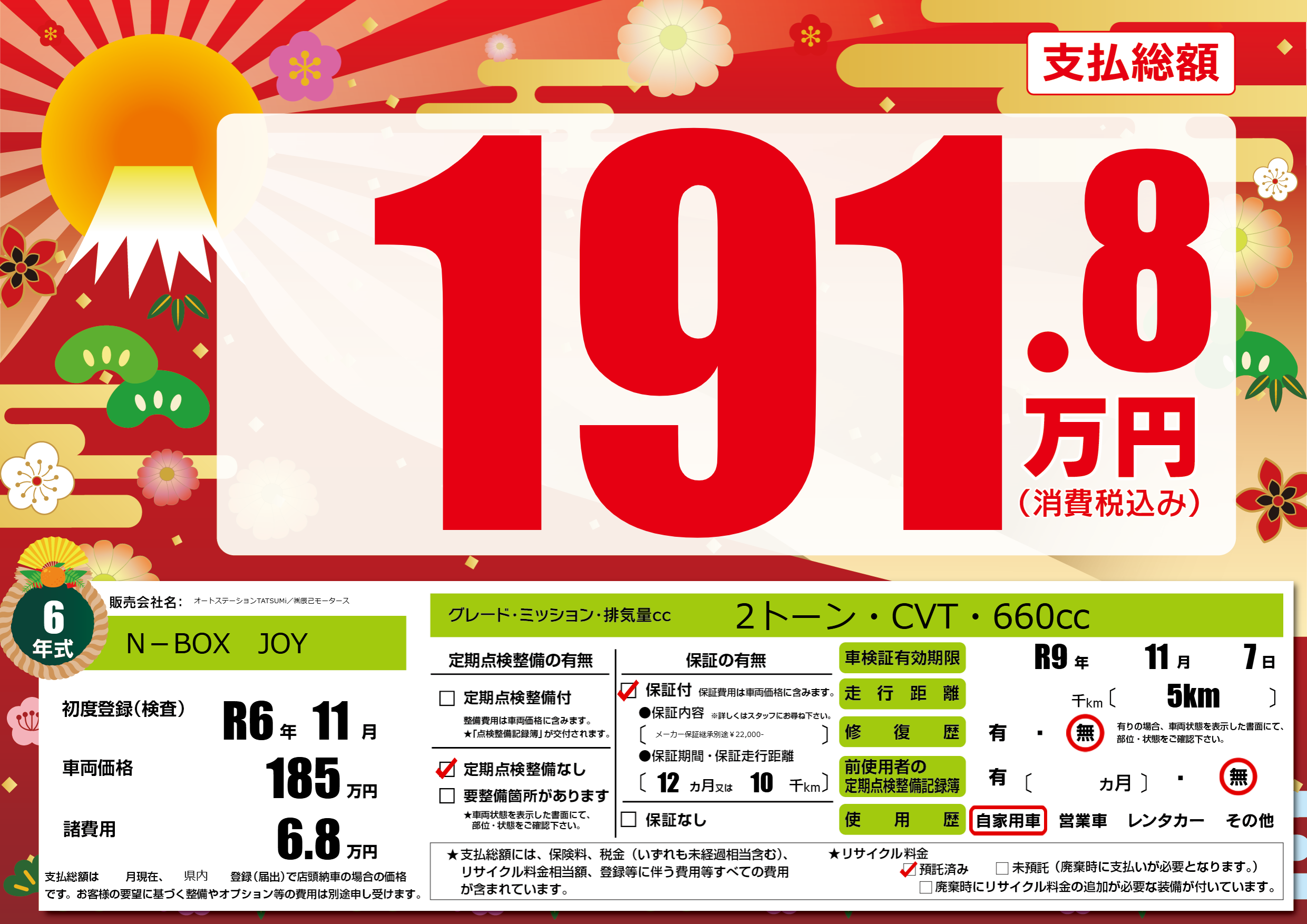 なし | 車検制限 | R9年11月7月 |